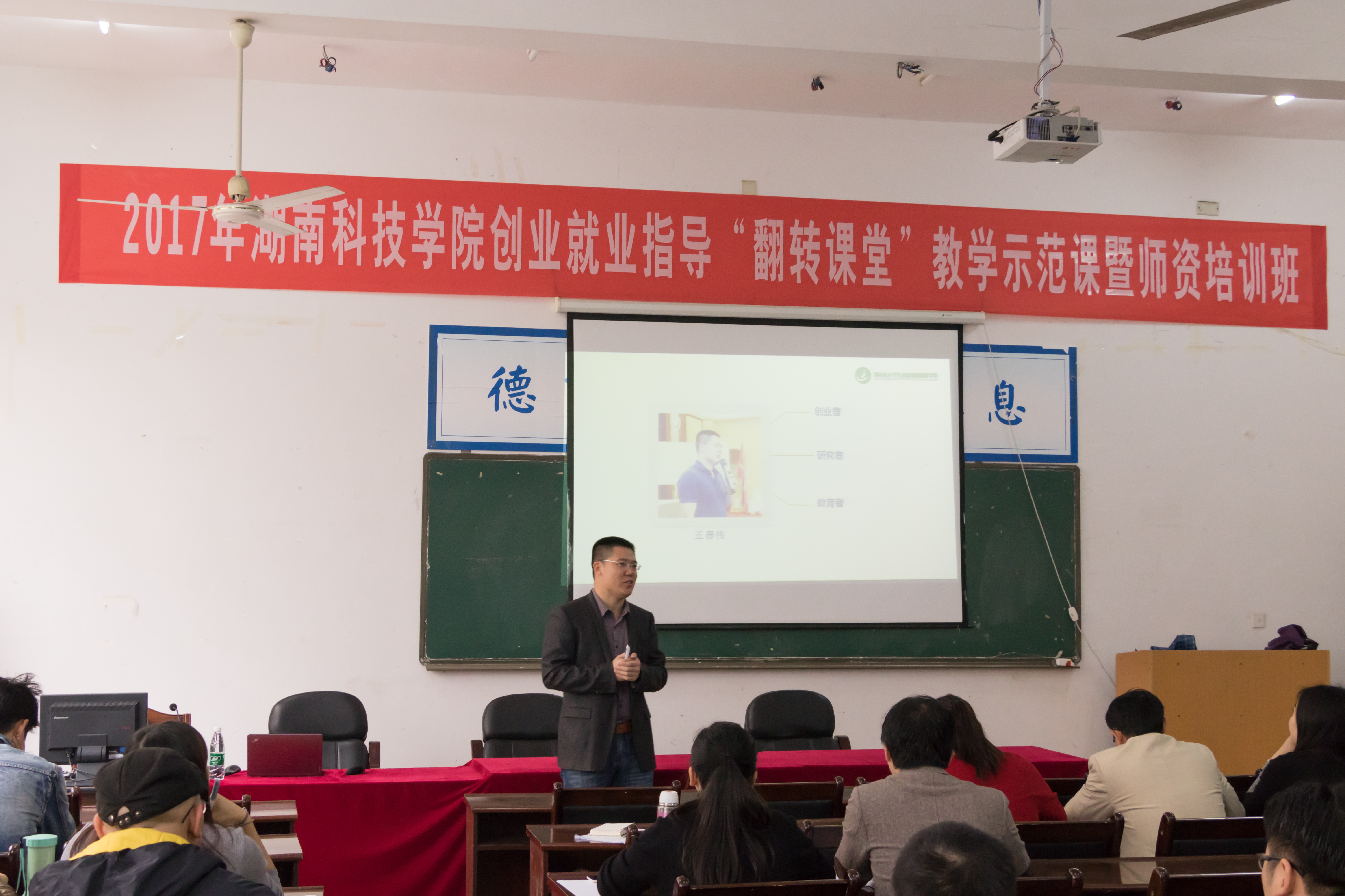 本网讯 为加快推进学校创业就业指导师资队伍建设,进一步推进创业就业指导课程教学改革,近日,创新创业学院举办创业就业指导“翻转课堂”师资培训班,创业就业指导教研室35名教师参加了此次培训。全国大学生创新创业实践联盟副秘书长、乐易考教育科技集团双创学院院长王春伟主讲,就业创业指导中心主任郑银芳主持。