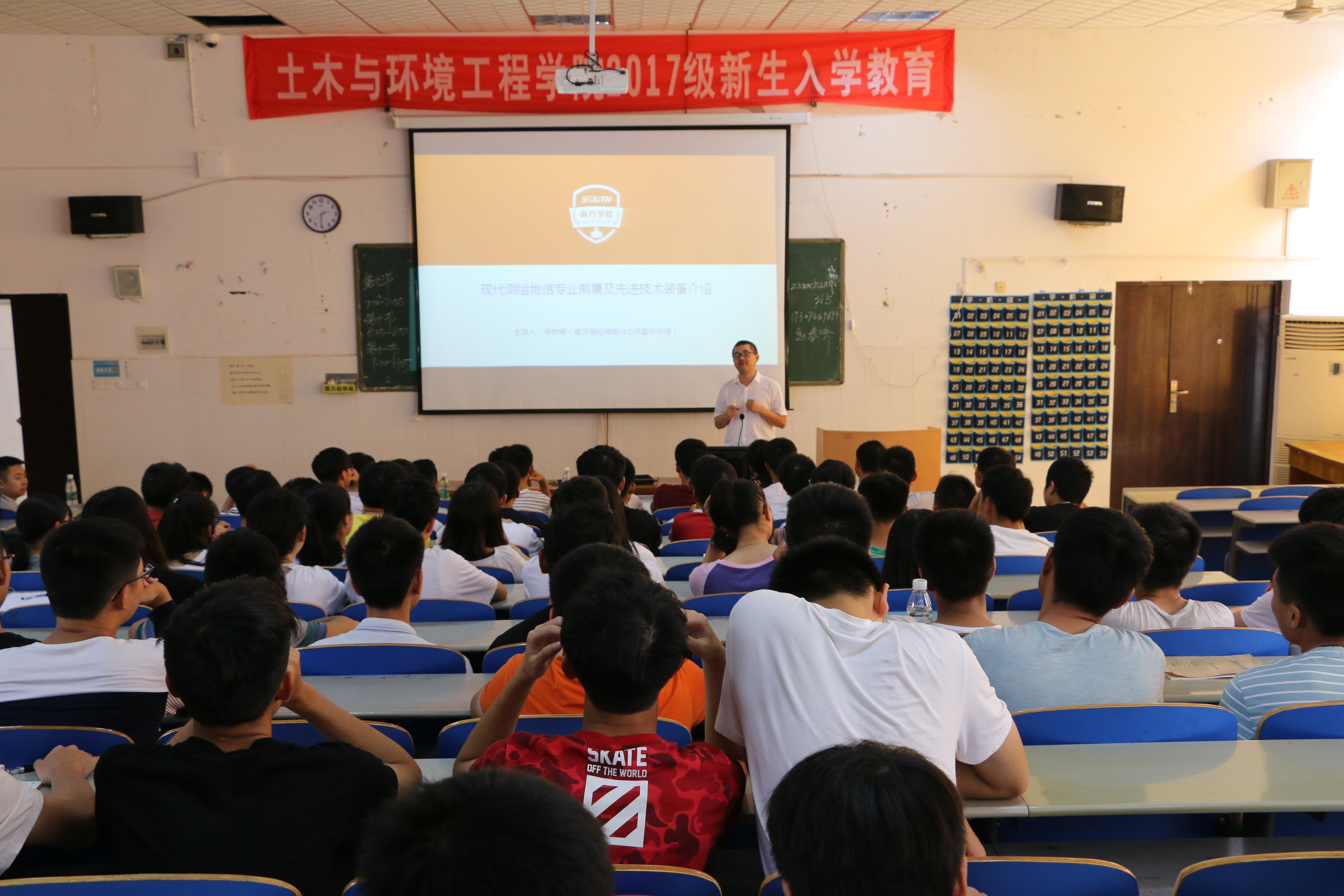 本网讯 10月10日,南方测绘湖南分公司副总经理寻林辉应土木与环境工程学院邀请,来校为测绘工程专业的全体师生作题为“现代测绘地信专业前景及先进技术装备介绍”的讲座。该院党总支书记张俭民主持讲座。
