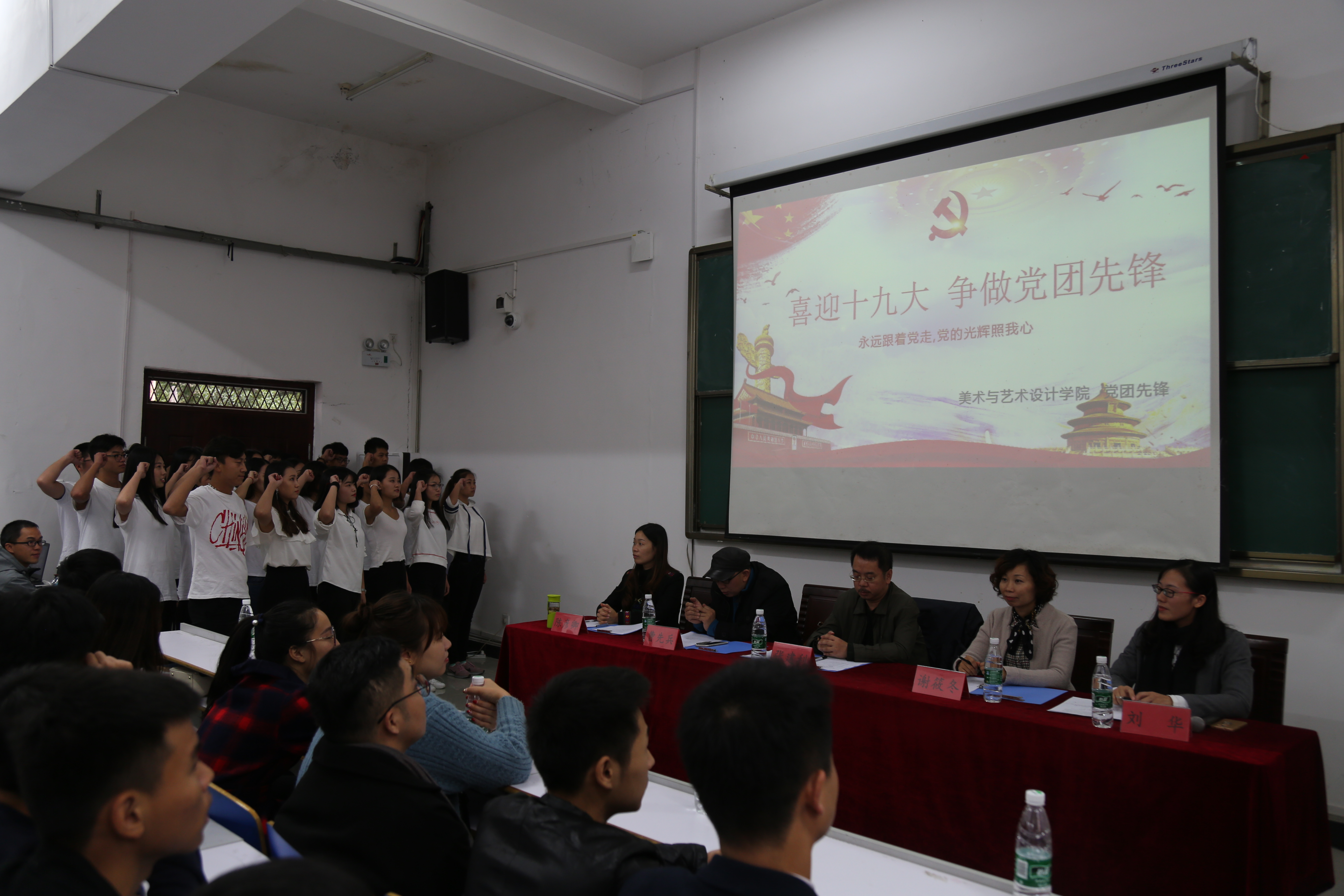 本网讯 为提升师生党员、团学干部的先进性和模范带头作用,增强对党的认识,加强党团组织建设,10月15日,美术与艺术设计学院党总支开展“喜迎‘十九大’,争做党团先锋”主题教育活动,该院院长张建利、党总支书记谢筱冬出席本次活动。