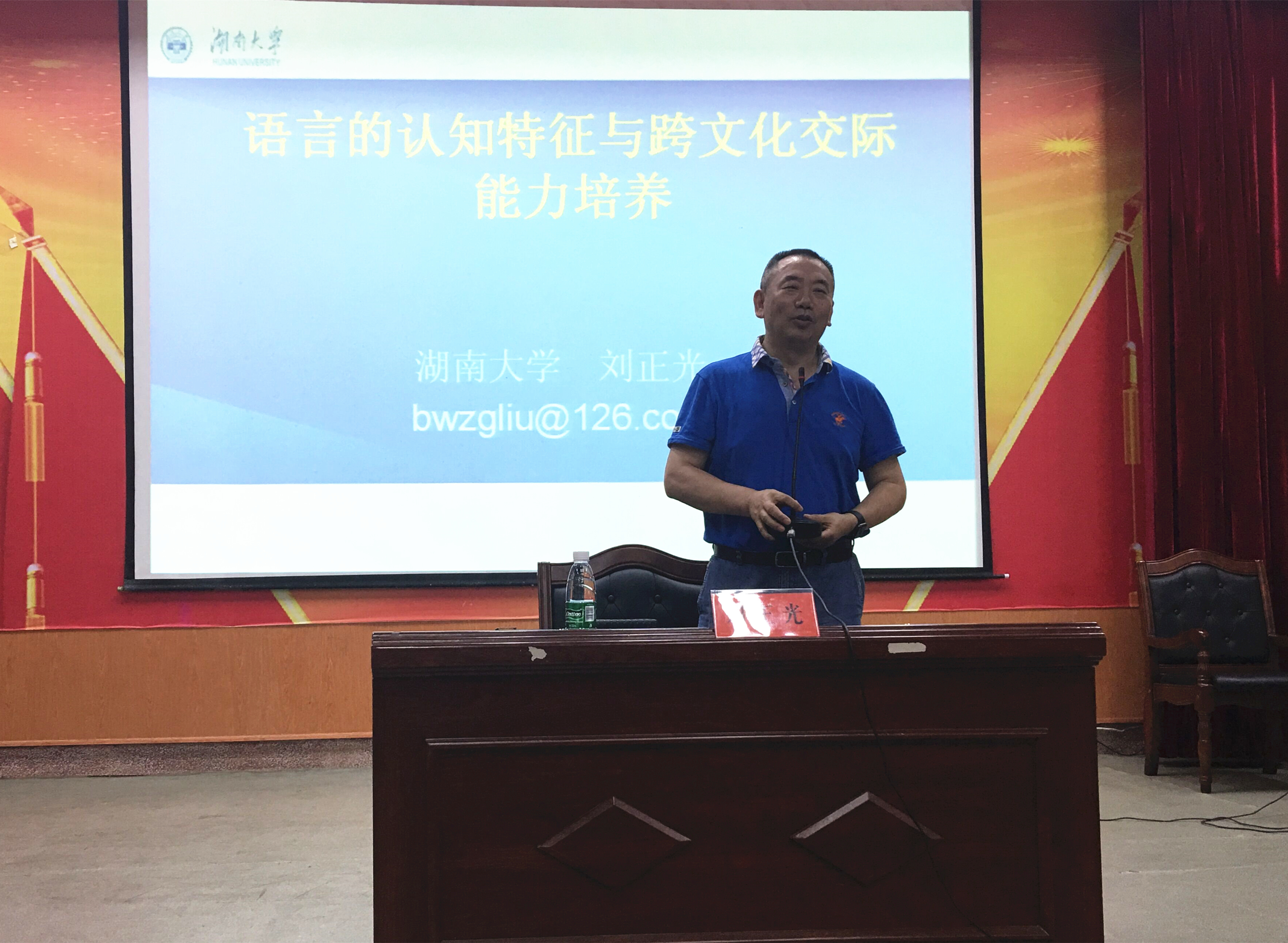 本网讯(通讯员 )6月19日上午,湖南大学外国语学院院长、博士生导师刘正光教授应邀来我校外国语学院讲学,该院院长欧华恩主持讲座,外国语学院部分教师以及全体学生聆听了此次讲座。