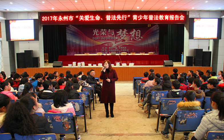 本网讯 为帮助广大青少年学法、知法、守法、用法,树立法治意识和依法治国理念,近期,永州市关工委牵头组织了以“关爱明天 普法先行”为主题的青少年普法教育巡回宣讲活动。我校马克思主义学院教师管敏应邀作为宣讲团成员参加了此次宣讲活动。