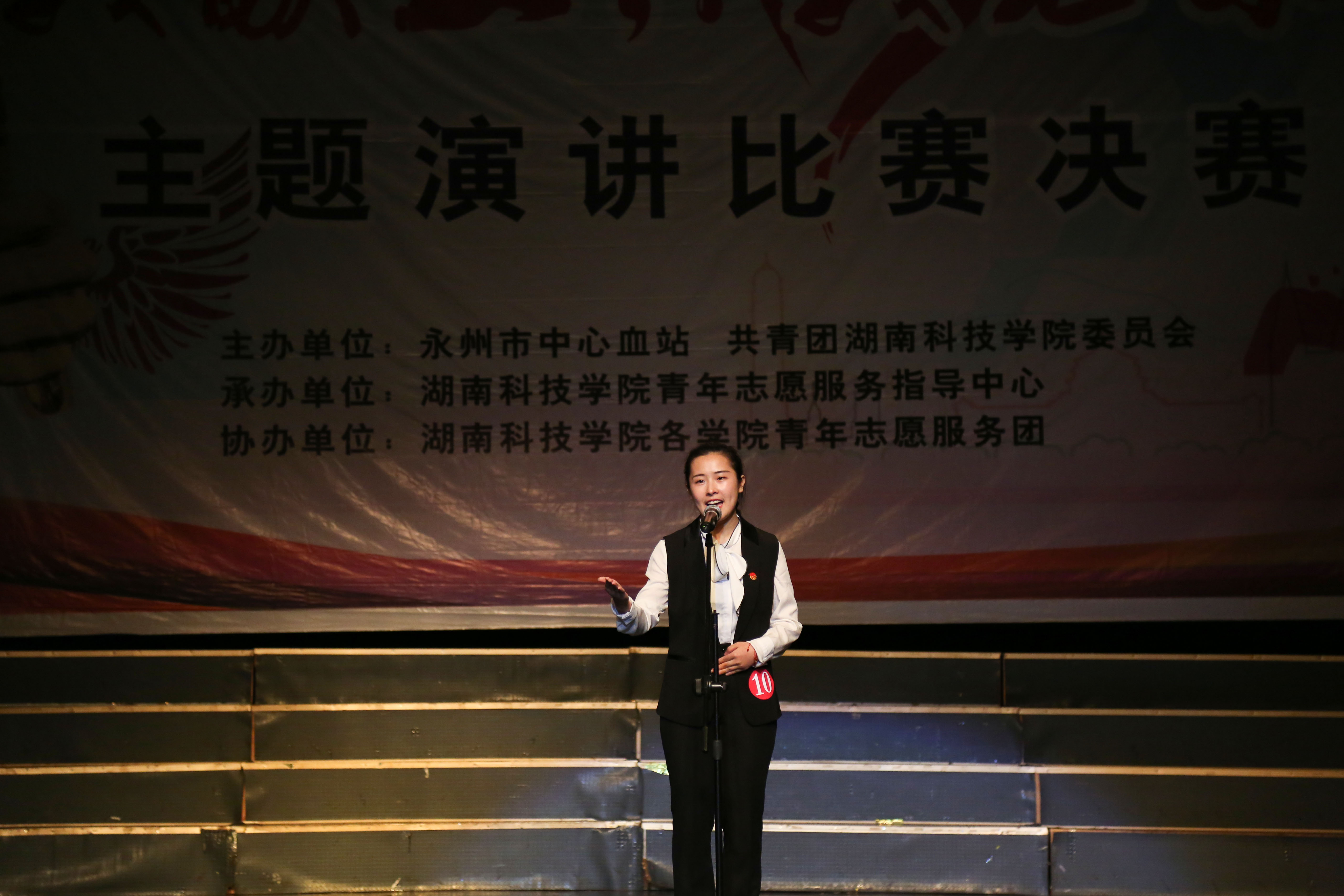 本网讯 4月7日晚,由共青团九游在线委员会、永州市中心血站联合主办,学校青年志愿服务指导中心承办的“我献血,我光荣”主题演讲比赛在音乐厅举行。永州市中心血站党支部书记、站长郑淑山,校团委副书记刘佳等应邀出席并担任评委。