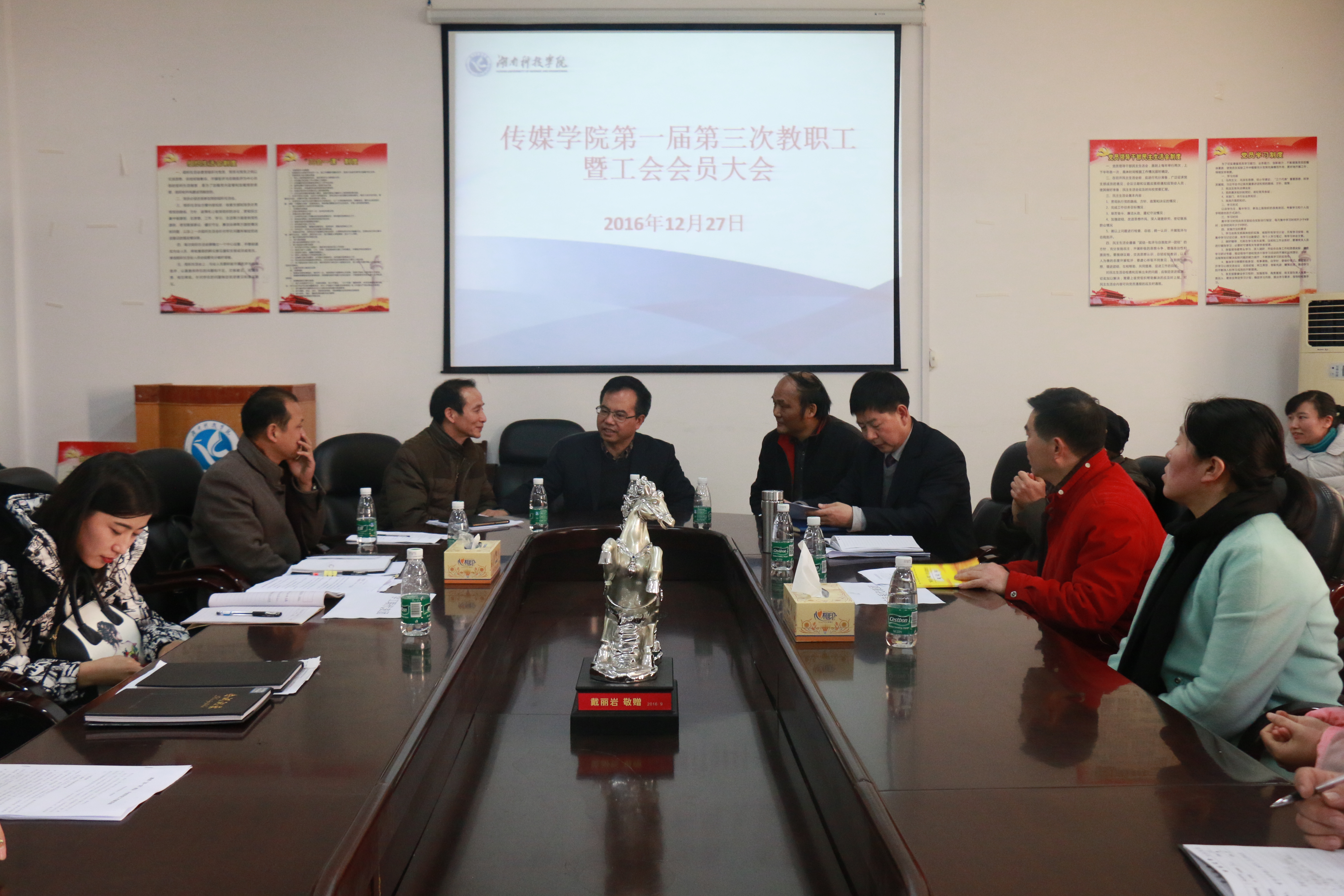 会上杨增和题为“聚焦‘双一流’建设,开创学院工作新局面”工作报告2016年传媒学院在教学、科研、党建、学等方面均取得积极进展,尤其是作风教风学风建设取得明显成效。新的一年,传媒学院将紧紧围绕国家传媒产业发展政策和学校发展战略目标,努力培养适应区域经济社会发展的高水平应用型人才。以专业建设为依托,以教师队伍建设为核心,以科研为先导,以教学为中心,着力内涵发展创新机制,聚焦区域社会传媒产业发展,建构产学研多元共建与合作共赢的传媒创意产业联盟拓宽办学的国际化视野,提升传媒学院核心竞争力,全面推进学院的各项工作。