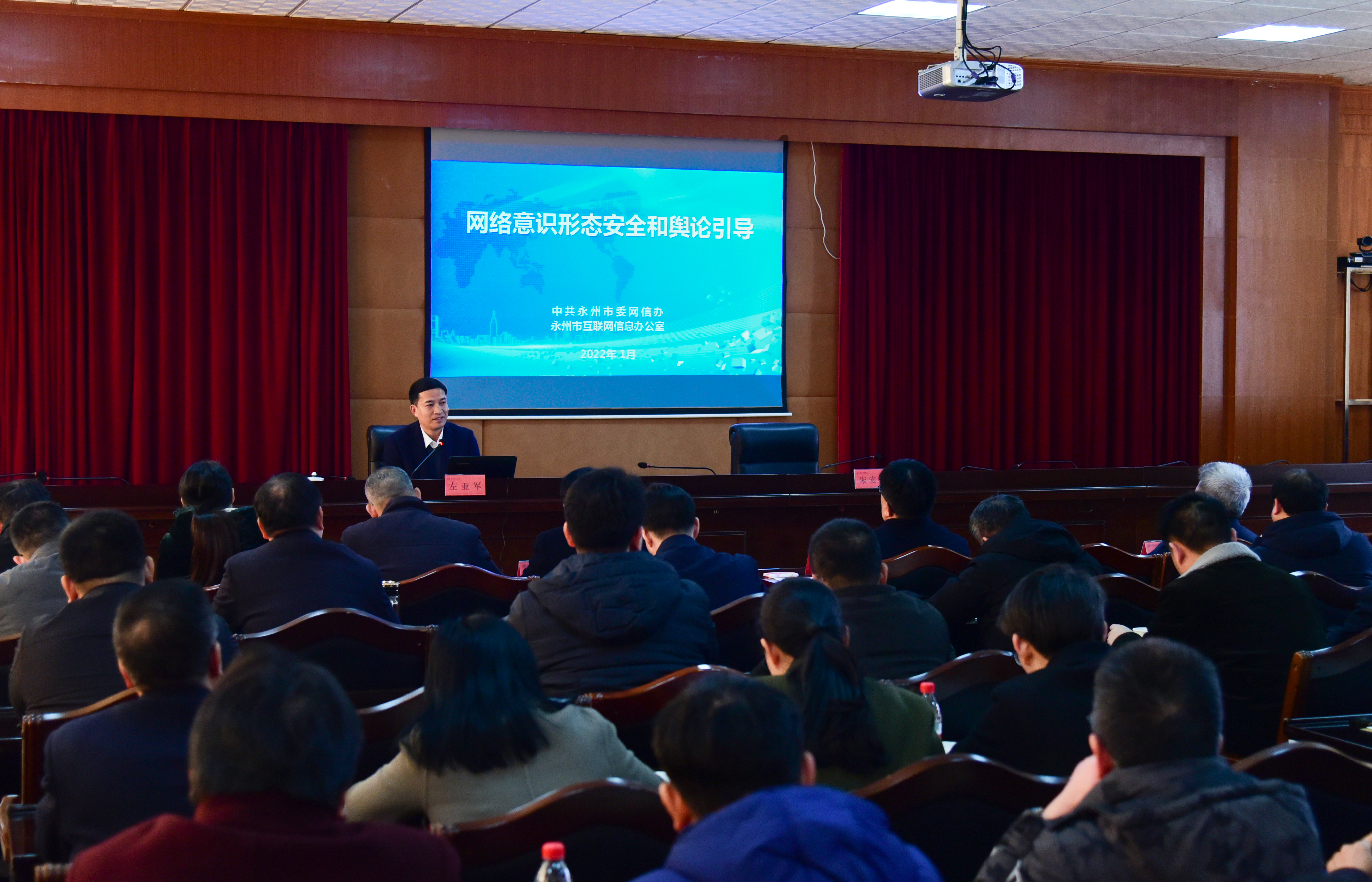 本网讯 为深入贯彻落实中央、省委、省委教育工委关于意识形态工作的决策部署,进一步加强党对意识形态工作的领导,提高全校各级领导干部做好意识形态工作的能力与水平,1月11日,学校召开意识形态工作专题培训会,中共永州市委网信办主任左亚军应邀作专题辅导报告。全体党委委员、校领导及中层干部参加会议。会议由党委副书记宋宏福主持。