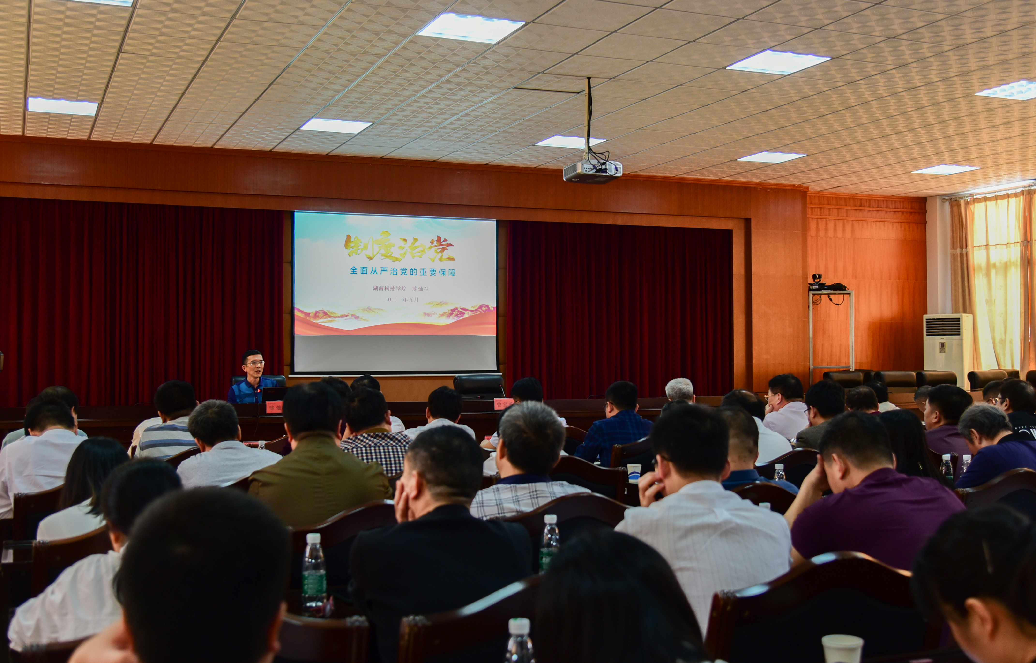 纪委书记陈灿军以《制度治党 全面从严治党的重要保障》为题讲授专题党课。陈灿军从制度治党事关长远、标本兼治建章立制、与时俱进完善发展等三个方面深入阐述了制度建设对于党的建设与发展的重要意义及作用,强调“治国必须治党,治党务必从严,从严必依法度”,强调制度治党是全面从严治党的重要保障。