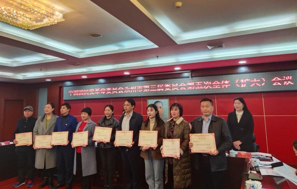 本网讯 3月21日上午,民革永州市第三届委员会第五次全体(扩大)会议在冷水滩召开,会议表彰了先进。民革九游在线支部荣获先进支部,这也是民革永州市委2013年开展争先创优以来民革校支部第五次荣获先进支部。陈义勇荣获优秀党员,方芳荣获优秀党务工作者,民革校支部提交的调研报告获2020年度永州市政协好调研二等奖。