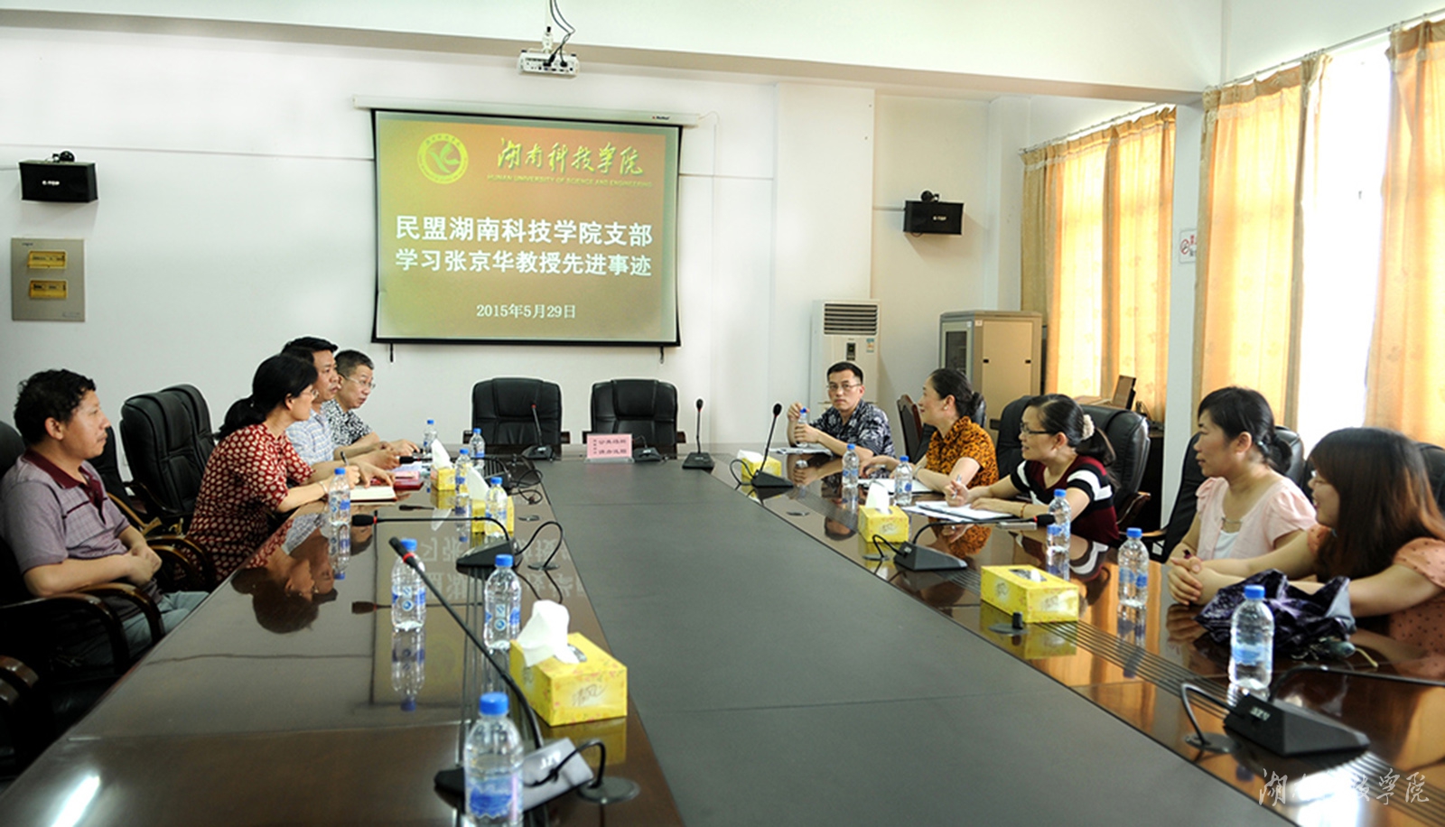 民盟九游在线支部积极响应省委教育工作委员会和九游在线党委关于开展向张京华教授学习活动的号召,5月29日下午在行政办公楼六楼组织开展学习张京华教授先进事迹的活动。民盟支部在家的全体会员参加。支部主委徐大成主持学习活动,学校宣传统战部副部长王瑞华出席了活动。