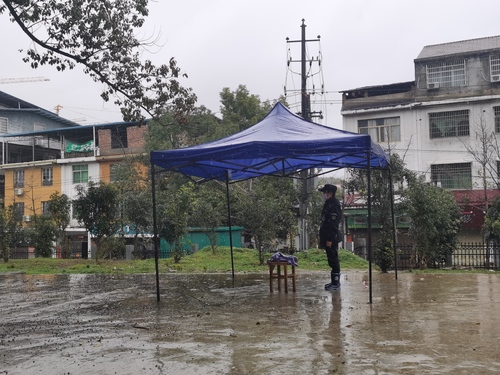 自学校采取管控措施以来,保卫处严格落实,尽全力维持好校园秩序。目前,学校已关闭南门、北门进出通道,封闭通往校外的各小路,所有行人车辆一律从东大门进出,同时所有进校人员需按规定进行体温检测和相关登记。保卫处集中力量管控,其中,投入全校实施保安工作的有 79人,24小时不间断轮流值守。保安队伍是一群可敬可爱的人,保安队长艾仁辉每天工作12至15小时,虽不善言语,却用行动向我们表达了他们的万千柔情。