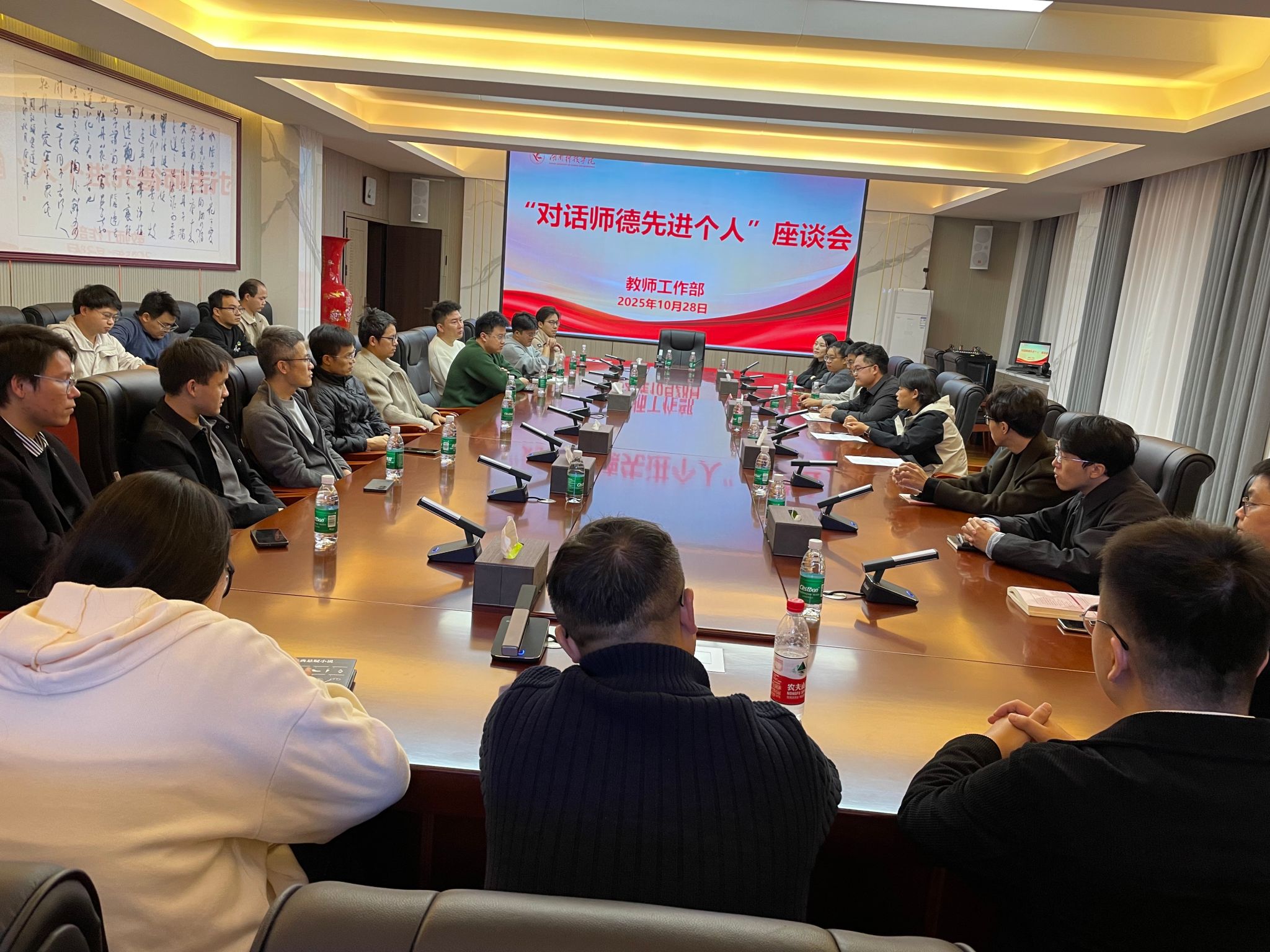 本网讯(记者 吴楚禹)为进一步弘扬高尚师德,传承育人初心,10月28日晚,我校在行政楼613会议室举办“对话师德先进个人”座谈会。本次座谈会特邀荣获校级“师德先进个人”称号的邵金侠、杜俊杰两位教师代表作主题分享,各学院青年教师代表齐聚一堂,共话育人使命。