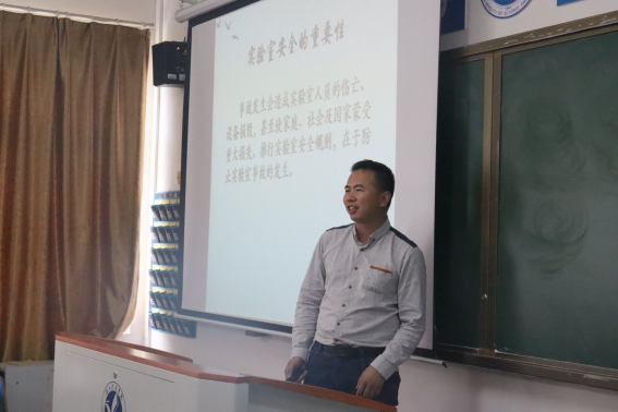 孙老师以历年高校实验室事故为引导,围绕为什么要在实验室注意安全,在实验室该如何注意安全两大主题,结合学院实验室实际情况,从“水、电、火、毒、爆、气”等常见危险源的判定、预防与处置等方面对学生进行培训,强调实验室纪律,要求学生严守操作规程,熟悉应急预案,牢记应急措施,安全第一。 培训结束后,同学们都表示要在实验中注意保护自身安全,维护实验室安全,在安全实验中获取成果。