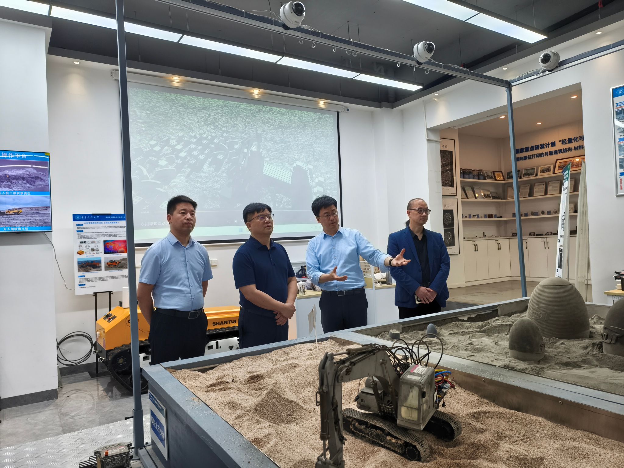 在华中科技大学国家数字建造技术创新中心,调研组考察了极端环境建造机器人研究进展、面向月面原位建造的关键结构材料及应用基础研究、工程建造云边端数据协同机制与一体化建模关键技术等前沿科技。在华中科技大学人文学院,调研组详细了解了该院在学科专业设置、科学研究、新文科建设及人才培养等方面的做法,并对该院“数字人文赋能课程”进行了深入考察学习。
