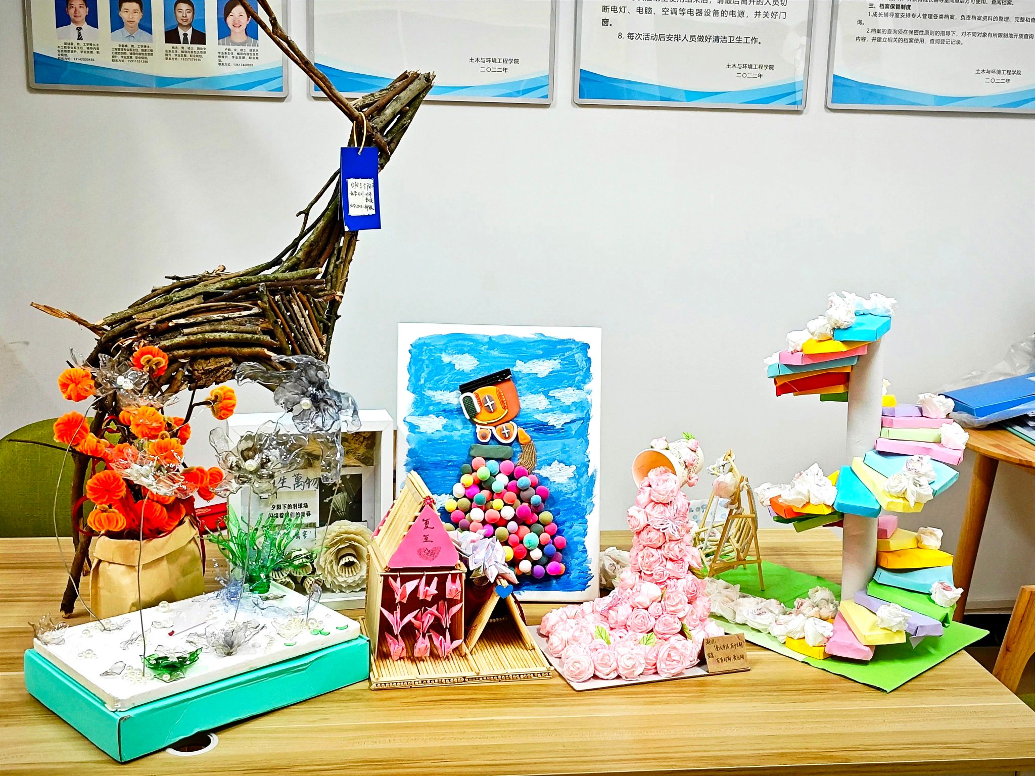 | 土环院成功举办“心向阳光,拥抱未来”手工艺品活动 本网讯(通讯员:孟新宇、潘艳丽):为不断创新心理育人形式,加强劳动育心,提高学生动手能力,培养学生想象力和创造力,减轻学生心理压力,培育学生自尊自信、理性平和、积极向上的健康心态,促进学生身心健康发展,土环学院于4月12日至4月22日举办了“心向阳光,拥抱未来”手工艺品活动。