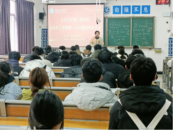 本网讯(通讯员 李俊豪)2月26日,土木与环境工程学院在逸夫楼204召开了2024-2025年下学期第一次心理信息员培训会议。会议由心理专干潘艳丽老师主讲,我院24、23、22级各班心理委员、信息员参加会议。