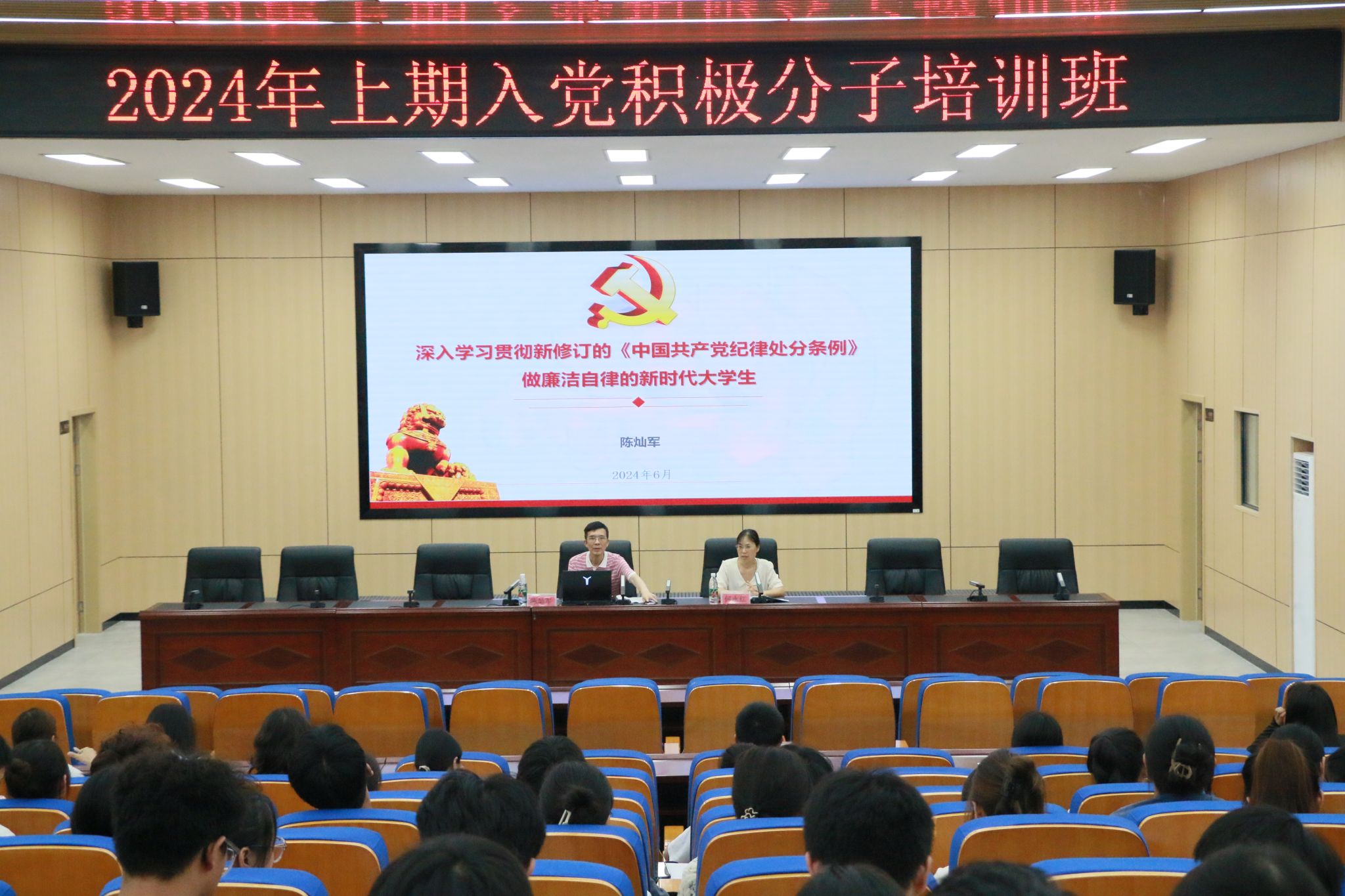陈灿军分别从新修订的《中国共产党纪律处分条例》的重要意义、准确把握《条例》修订的主旨要义以及践行要求、做廉洁自律的新时代大学生三个方面,结合大量生动鲜活的党史故事和发人深省的警示案例,生动诠释了严明党的纪律和规矩是我们党的优良传统和独特优势,明确强调了大学生党员加强纪律教育的必要性和重要性。