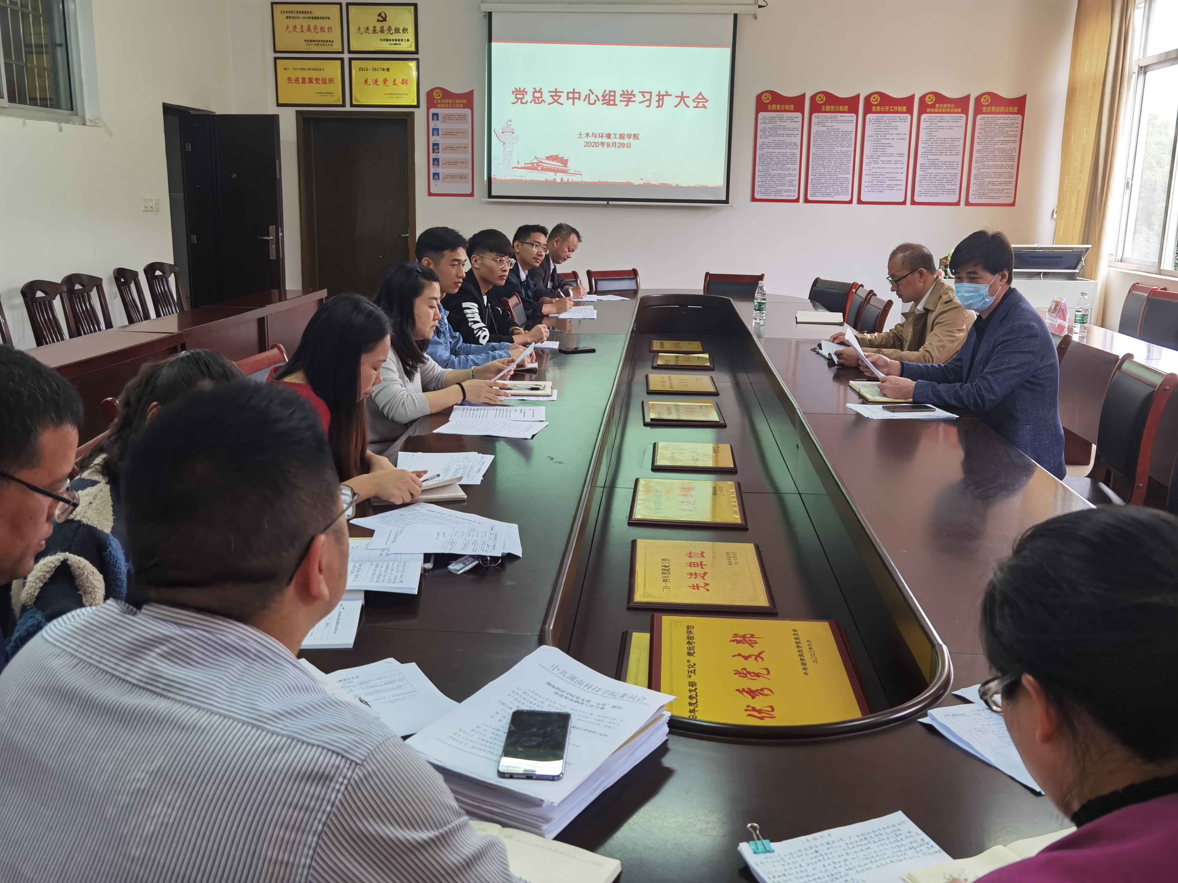 本网讯 (通讯员 谢娟)2020年9月29日上午,土木与环境工程展开党总支理论学习中心组(扩大)2020年第四次集体学习,学院全体院领导,支部书记,学院副科级及以上干部参加学习,学习会由该院党总支书记张俭民主持。