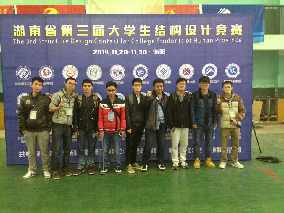 2014年11月28日至30日在南华大学举行的湖南省第三届结构设计大赛落下帷幕,我系派出向建华等九名学生组成三支参赛队伍,在带队老师冯煜,指导老师黄林华、徐振华、李松的带领下,经过紧张激烈的模型设计、制作、加载比试,最终黄林华老师指导的参赛队伍“零陵号”(向建华、王春健、崔鹏陆三名同学)在64支参赛队伍中排名第7,荣获二等奖,其它两支队伍分列第31和39位。