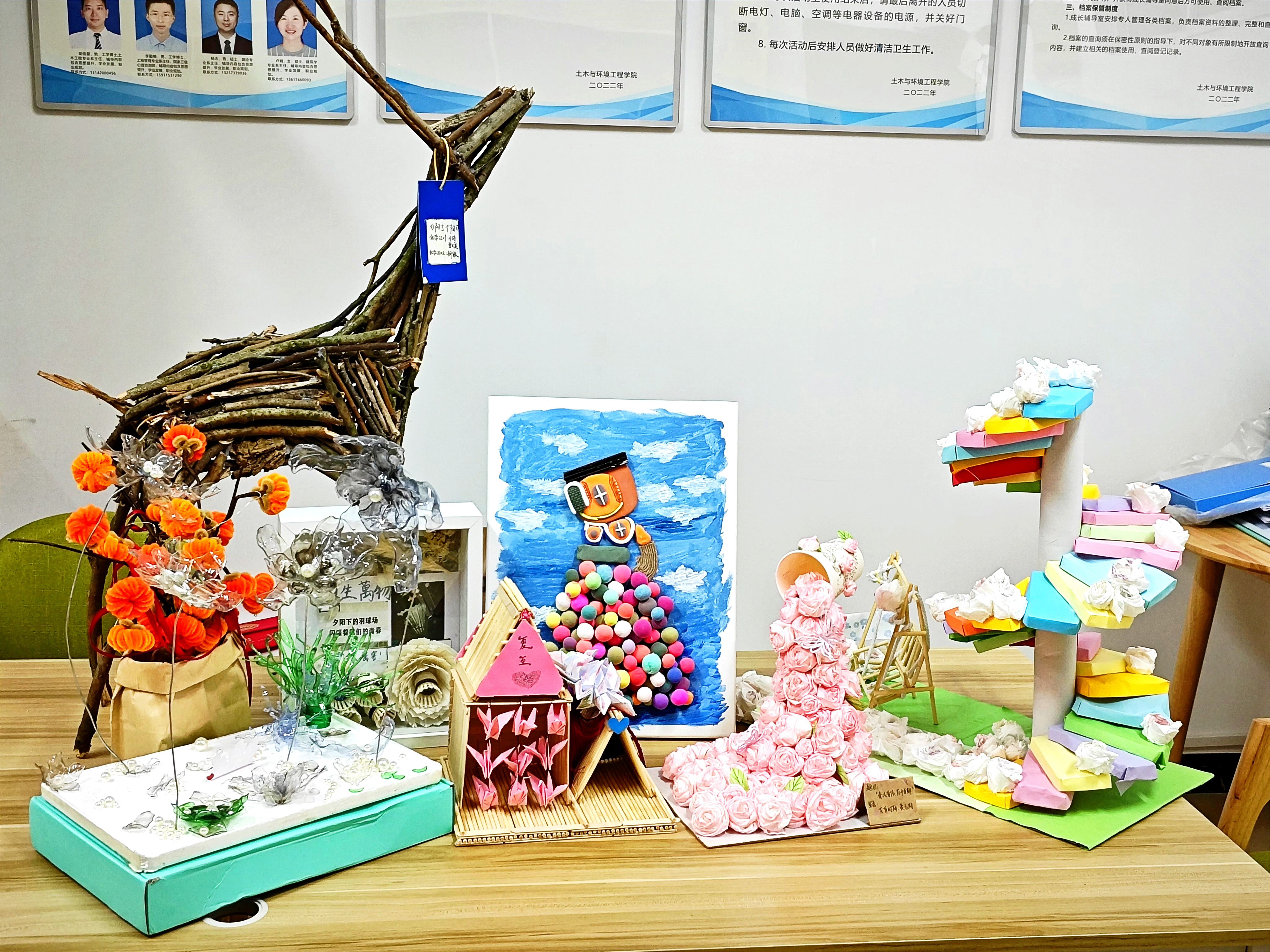 本网讯(通讯员:孟新宇、潘艳丽):为不断创新心理育人形式,加强劳动育心,提高学生动手能力,培养学生想象力和创造力,减轻学生心理压力,培育学生自尊自信、理性平和、积极向上的健康心态,促进学生身心健康发展,土环学院于4月12日至4月22日举办了“心向阳光,拥抱未来”手工艺品活动。