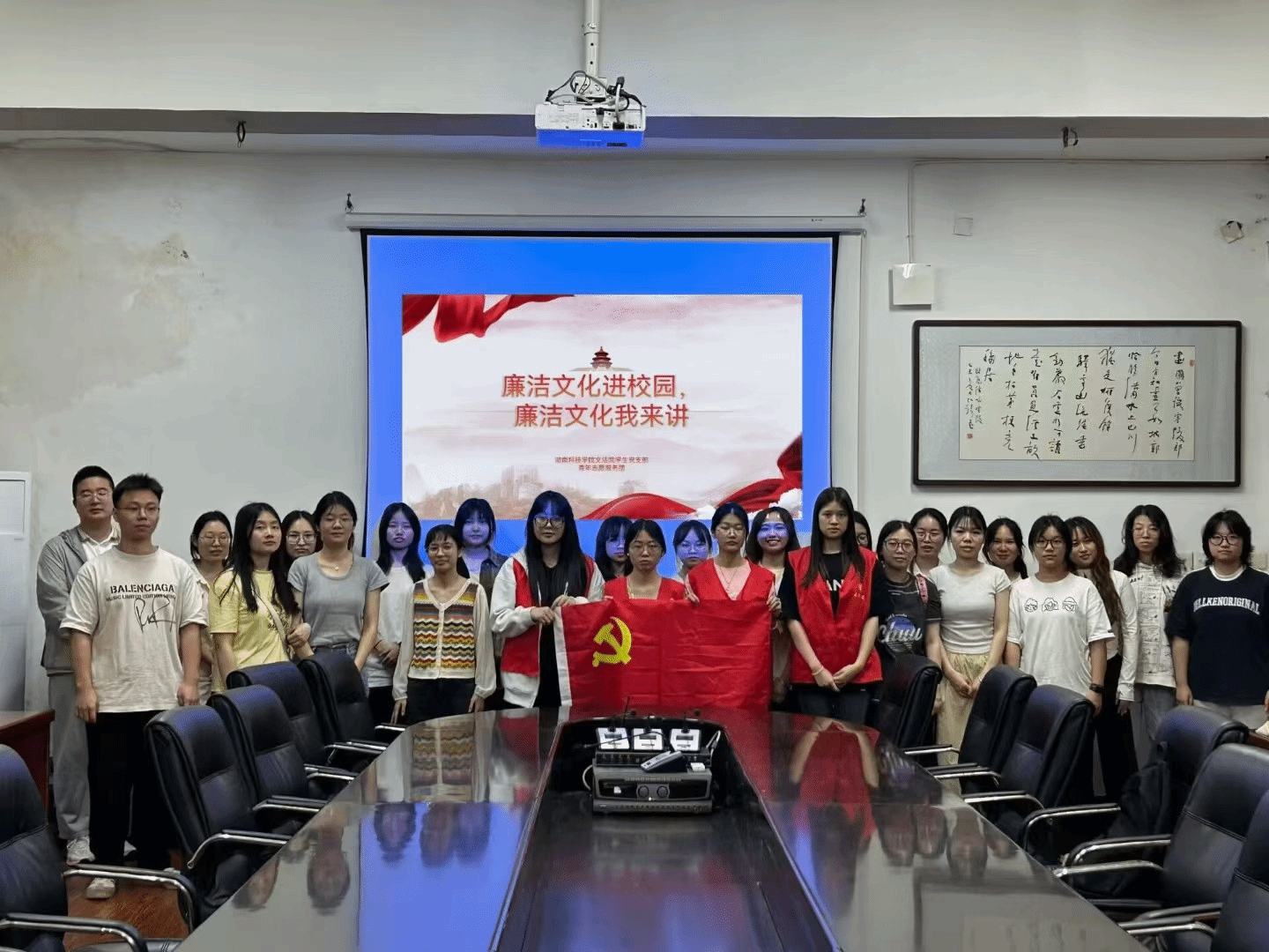 2024年5月17日星期五,九游在线文法学院青年志愿服务团和社会实践部在明德楼603教室开展以“树清廉家风,扬浩然国风”为主题的读书分享会。