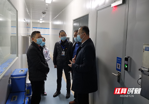 安化县委书记刘勇会(右一)调研疫情防控工作
