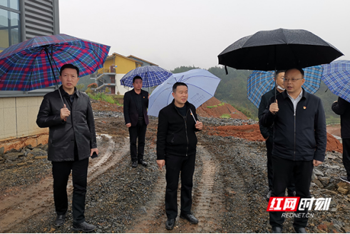安化县委书记刘勇会(右一)调研茶乡花海示范区建设