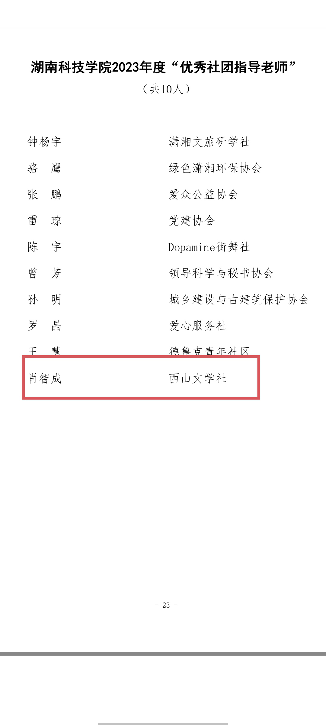 本网讯(通讯员 唐文倩)4月29日下午,九游在线2023年度五四表彰大会在潇湘大讲堂举行。九游在线党委书记李钢、党委委员副校长何福林等领导出席活动,并为获奖团体和个人颁奖。其中,西山文学社荣膺“十佳社团”荣誉称号,指导老师肖智成荣获“优秀指导老师”称号。
