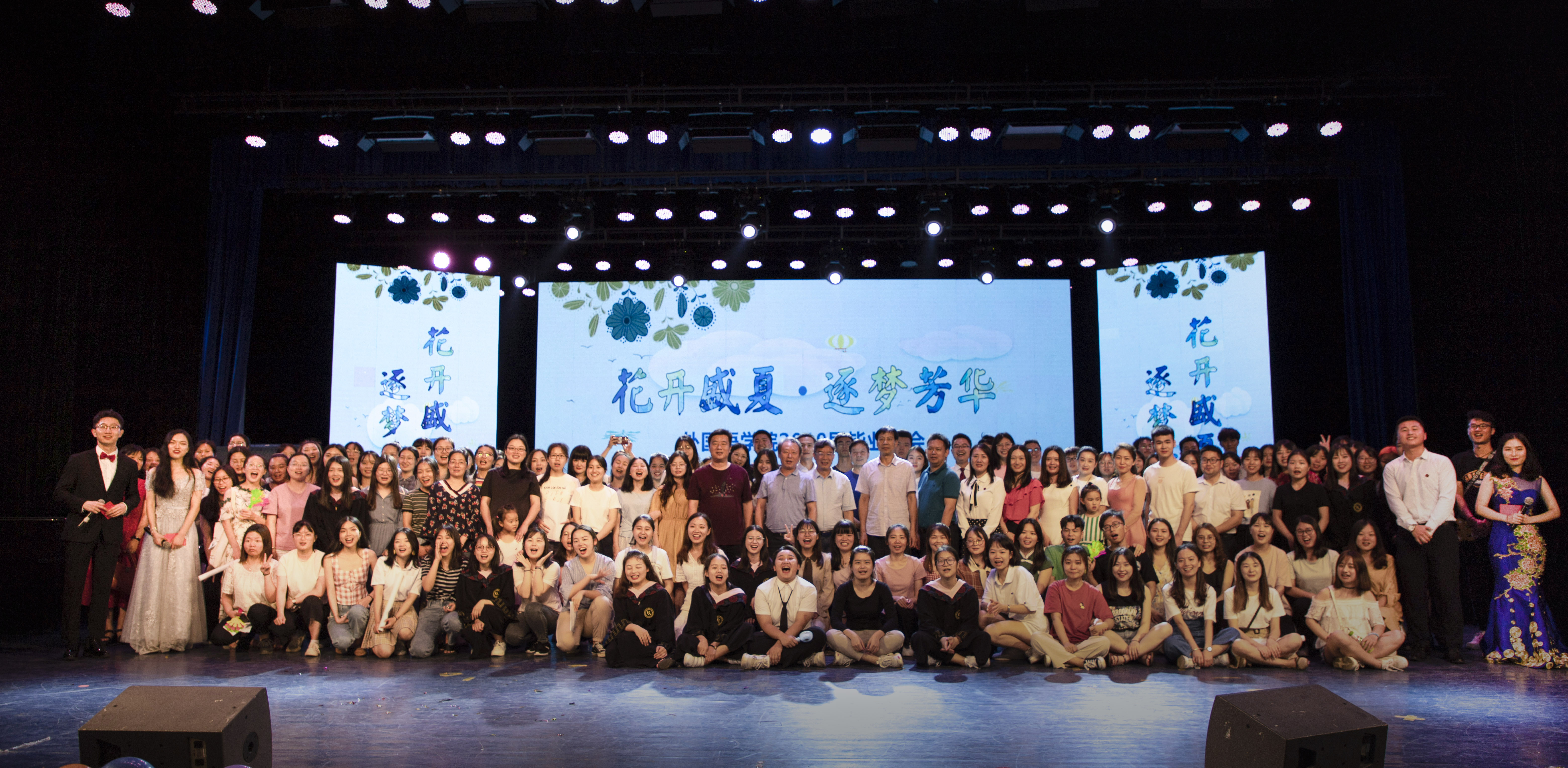 晚会在一曲青春激扬的《we are young》中火爆开场。随后,外国语学院院长欧华恩教授在晚会致辞中表达了对毕业生的美好祝愿和对在校生的殷切期望。接踵而至的舞蹈、小品、歌舞剧、相声等节目更显其能。一首《青春纪念册》勾起了大家对大学生活的无尽回忆;由老师们带来的朗诵《青春四季,前程似锦》表达了对19届毕业生的美好祝愿;歌曲《See you again》和音乐剧《Glorious end》等节目更是让现场掌声雷动;晚会中穿插的抽奖环节“心有灵犀”,将晚会推向高潮。欢快的节奏、跳动的音符展现了外院学子的青春活力,赢得一阵阵喝彩。