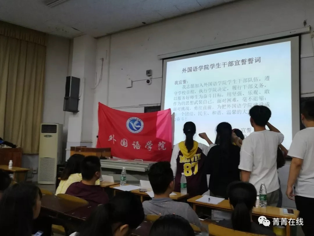 会议伊始,外国语学院学生干部上台宣读了入职誓词,旨在让新生们明白加入部门的职责。随后,主持人付钰彬宣布宣讲会正式开始。