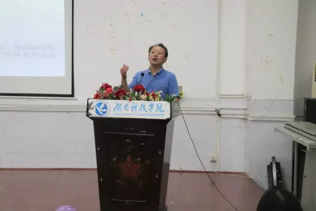 颁奖完毕,欧院长再次登台,首先表扬了所有的参赛选手,其次指出了同学们在演讲过程中的出现的一些小问题,并提出同学们在演讲比赛中需要注意“body language”。最后强调,所有的同学们在英语学习方面都还有一段很长的路要走,为了能走的更远,走向更好,同学们需要从现在开始更加努力。