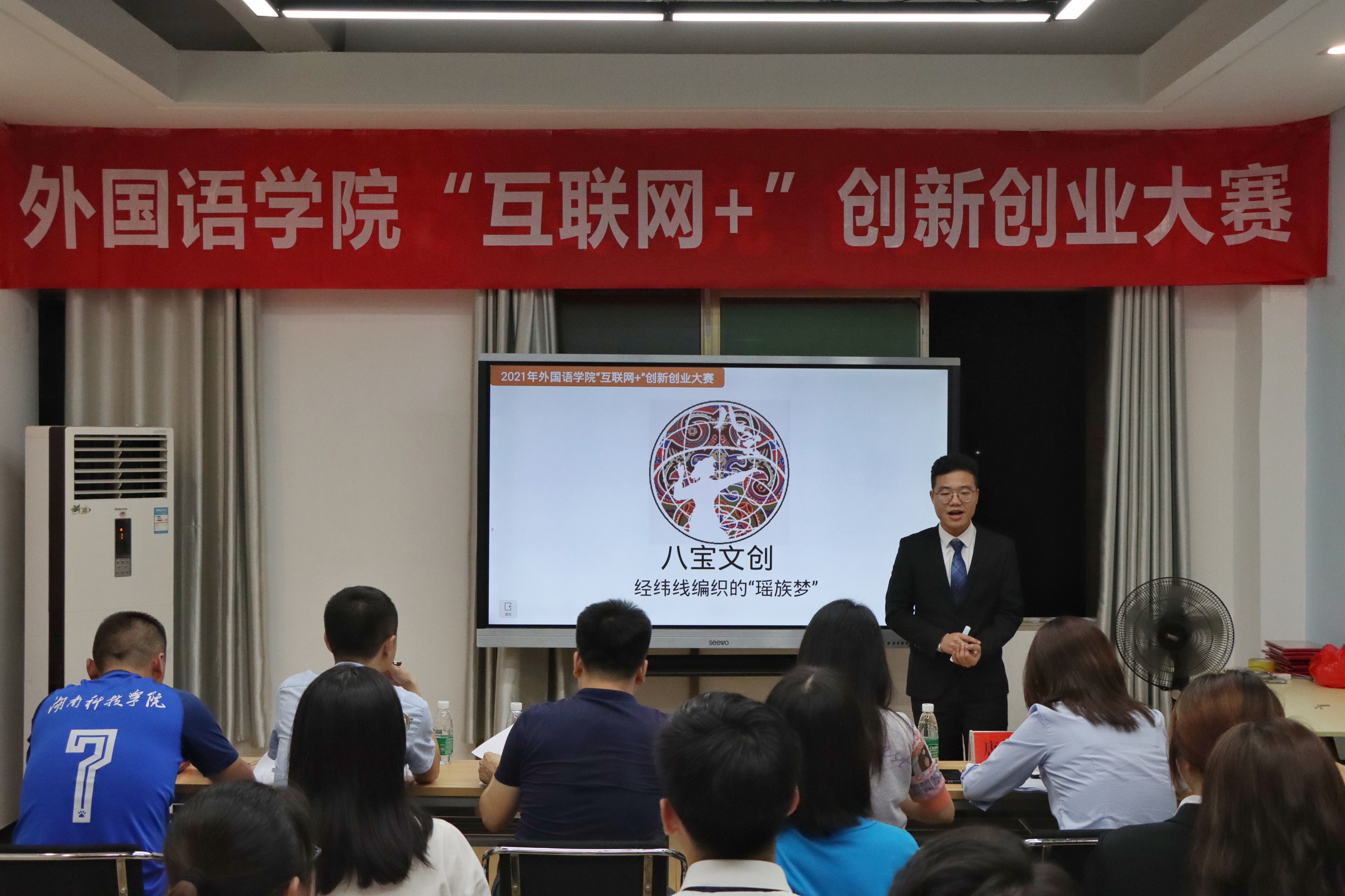 本网讯(通讯员 文慧聪)为进一步推动我院创新创业工作,激发大学生创新创业热情,培养创新创业型人才,6月2日晚7:30,外国语学院在创新创业大楼聚师堂校企合作工作室317室成功举办了 “互联网+”创新创业选拔赛。外国语学院党总书记张剑,学工办副主任刘罗、唐鹤轩;学校招生就业处处长、创新创业学院院长胡清华以及创新创业指导办主任龙泉莅临本次比赛并担任评委。