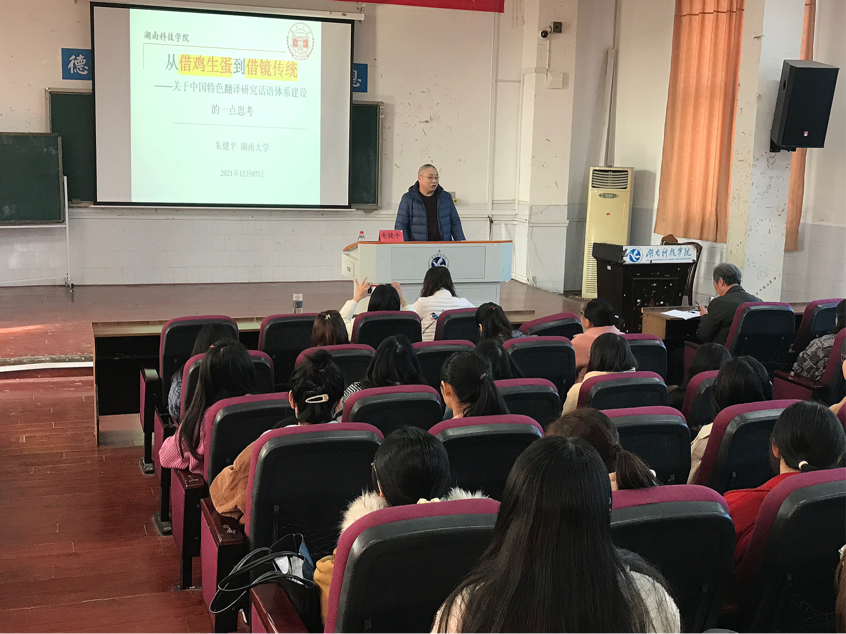 九游在线外国语学院院长欧华恩教授分别对两位教授的讲座致开场词,并分别对讲座做了精彩点评和总结。7日上午,朱健平教授开展了关于“从借鸡生蛋到借镜传统——关于中国特色翻译研究话语体系建设的一点思考”的专题讲座。朱健平教授对目前中国翻译研究话语产生的主要方式及构建中国特色翻译研究话语体系的必由之路进行了深入的阐释。建议在进一步大量吸收西方翻译研究乃至整个人文社科优秀成果的同时,更加重视借镜传统,从传统中汲取知识养分和思想资源,形成自己独特的翻译研究话语方式,构建更具独立性的中国特色翻译研究话语体系。