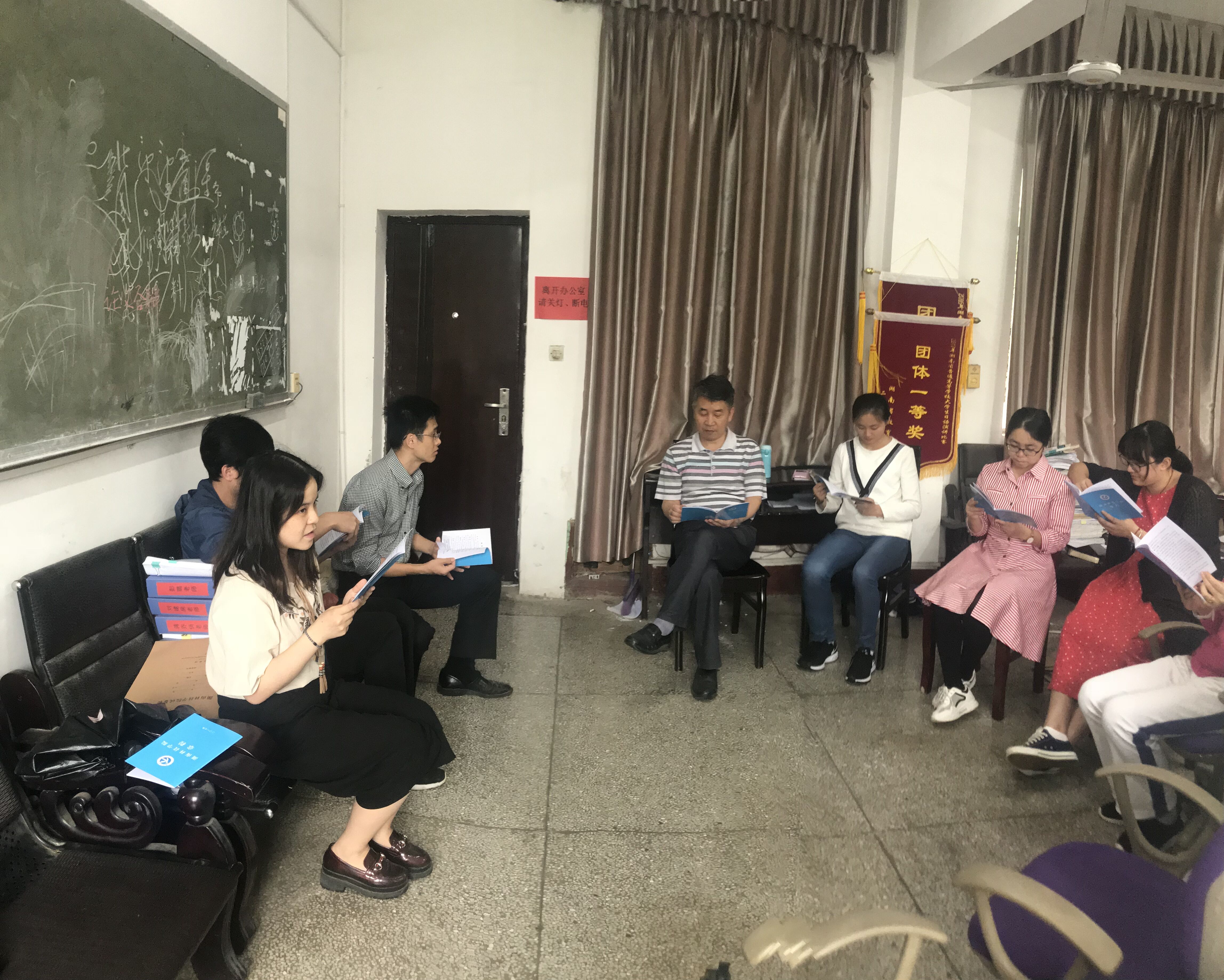 2018年6月5日下午,英语系全体教师在博雅楼202办公室、公共英语教学部在博雅楼304室、日语系在博雅楼205室分别集中学习了《九游在线章程》。会上,大家认真学习《章程》内容,并就学习心得进行交流。