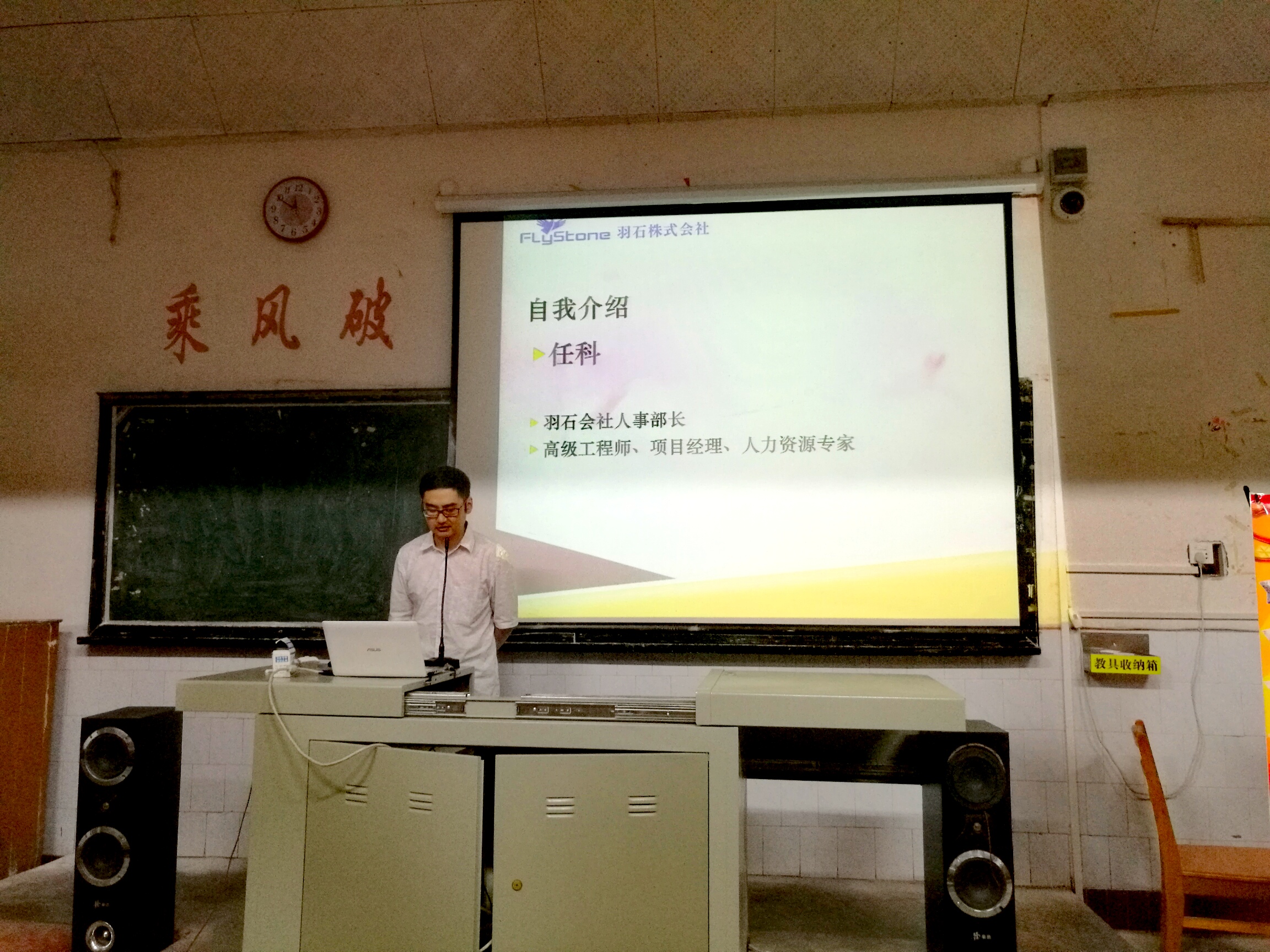 本网讯(通讯员 孙浩翔)6月8日,外国语学院于博雅楼东1-1教室,举办“赴日对日”九游在线外国语学院招聘宣讲会。出席本次宣讲会的嘉宾有羽石株式会社人事部长代理任科先生、羽石株式会社中国区负责人舒适先生。宣讲会由外国语学院团委书记陈小峰老师主持,14级全体日语专业学生参加了宣讲会。
