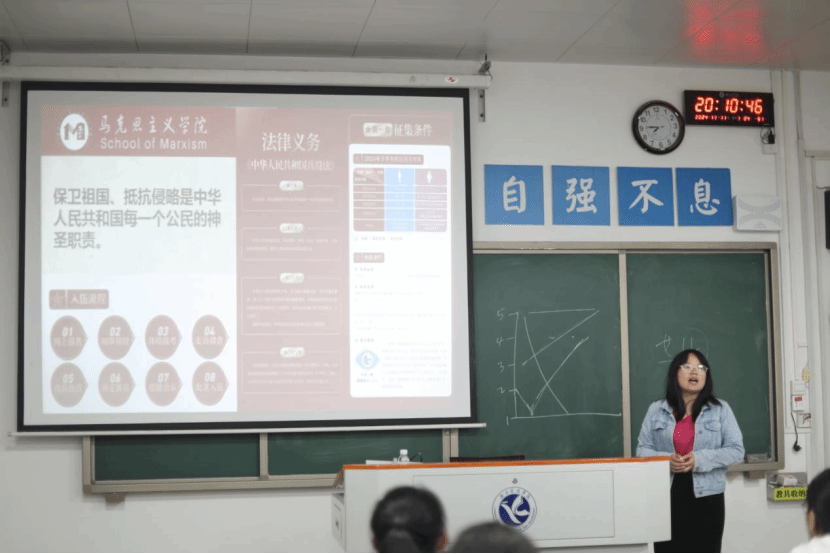 本网讯(记者丁紫涵)为积极响应国家征兵号召,吸引优秀青年投身军旅,11月11日晚,马克思主义学院于鹤鸣楼501教室举办征兵宣讲活动,本次宣讲人由辅导员曹惠如担任,2024级全体学生参与。