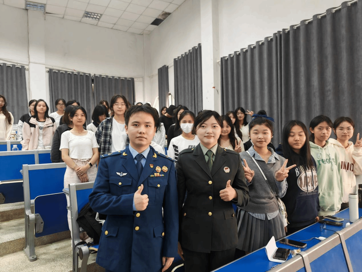 杨新花、倪振宇同学向同学们分享了自己在部队服役期间的所见所闻,新兵连的魔鬼训练、日常工作的严格要求、执行任务的热血青春等方面讲述了自己对部队的热爱。