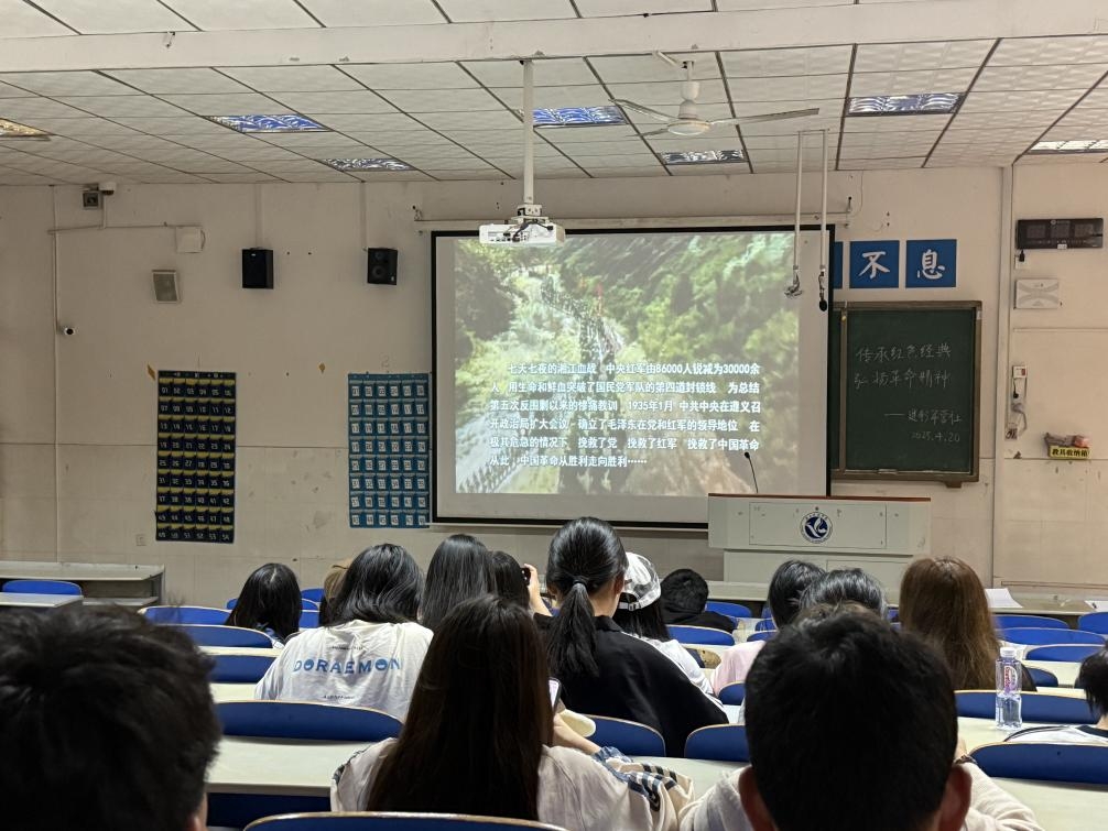 为传承红色基因,缅怀革命先烈,增强青年学子的爱国情怀与国防意识。2025年4月20日,我校迷彩军营社组织开展“传承红色经典·弘扬革命精神”红色军事电影主题观影活动,观看革命历史题材影片《血战湘江》。此次活动通过沉浸式红色观影、分享感悟等形式,带领同学们重温革命历史,激发凝聚奋进力量。