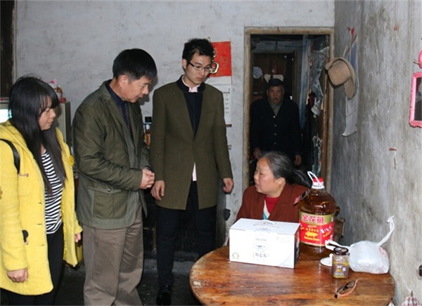 杨能山与师生党员走进了社区陆明跃等老人家里,在寒冬来临之际为他们送上了御寒的棉被、花生油、牛奶等日常用品。杨能山亲切慰问老人身体状况和日常饮食,并表示会尽力帮助老人解决实际困难,同时也将长期为该社区老人提供服务。