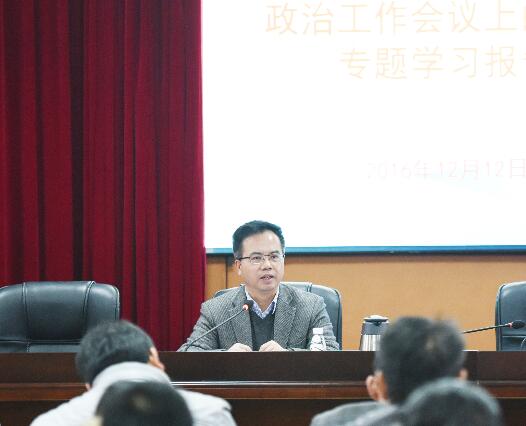 12月12日下午4:00,校党委书记陈弘教授在行政楼八楼一会议室带领各学院学工负责人、全体辅导员老师及各学院部分学生干部、党员集中学习了习近平总书记在全国高校思想政治工作会议上重要讲话精神,学工部全体同志参加,会议由学工部部长唐华山主持。
