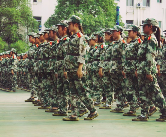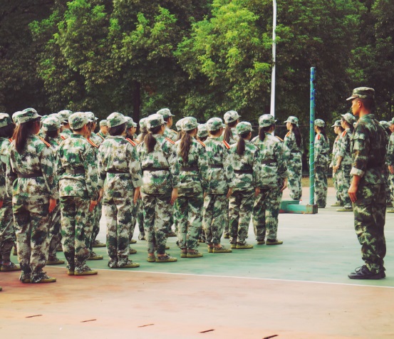 早上六点,伴随着初升的太阳,同学们迅速到达集结地待命。蔚蓝的天空下,教官们挺拔的身姿便是清晨湘科院最美的风景,同学们响亮的呐喊声响彻整个湘科院,分列式队列训练,展现的是最美的青春和热血。学校里“稍息”、“立正”、“整理着装”、“齐步走”、“向右转”操场上嘹亮的口号声不绝,身着迷彩服的美院学子应着口号声做着规范的动作。炎炎烈日的照射,放弃的念头在看到教官坚毅的脸庞时变为咬牙坚持;一开始的不适、东倒西歪、抱怨,逐渐被坚持和坚强所代替。
