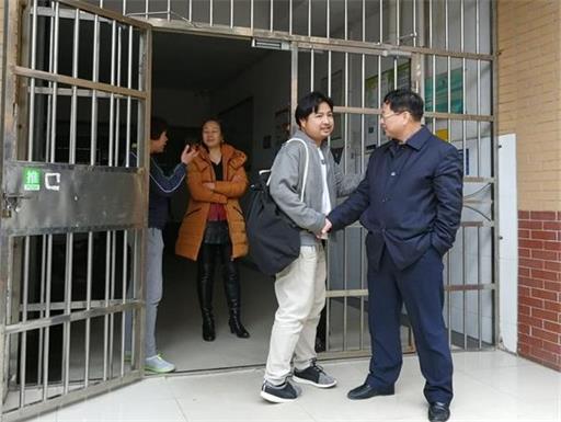 随后,唐华山一行深入宿舍,走访看望已到校学生,并亲切慰问了宿舍值班员,还检查了宿舍卫生、安保情况等,以确保学生能尽快的投入新学期学习生活。