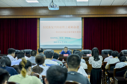 本网讯6月4日晚,党委书记、校长曾宝成为即将离校的毕业生党员授党课,勉励全体毕业生党员坚定理想信念,提高党性修养,练就过硬本领,在中华民族伟大复兴的新征程上砥砺奋进。各教学学院党总支副书记、辅导员、学工部相关人员以及2019届毕业生党员参加。
