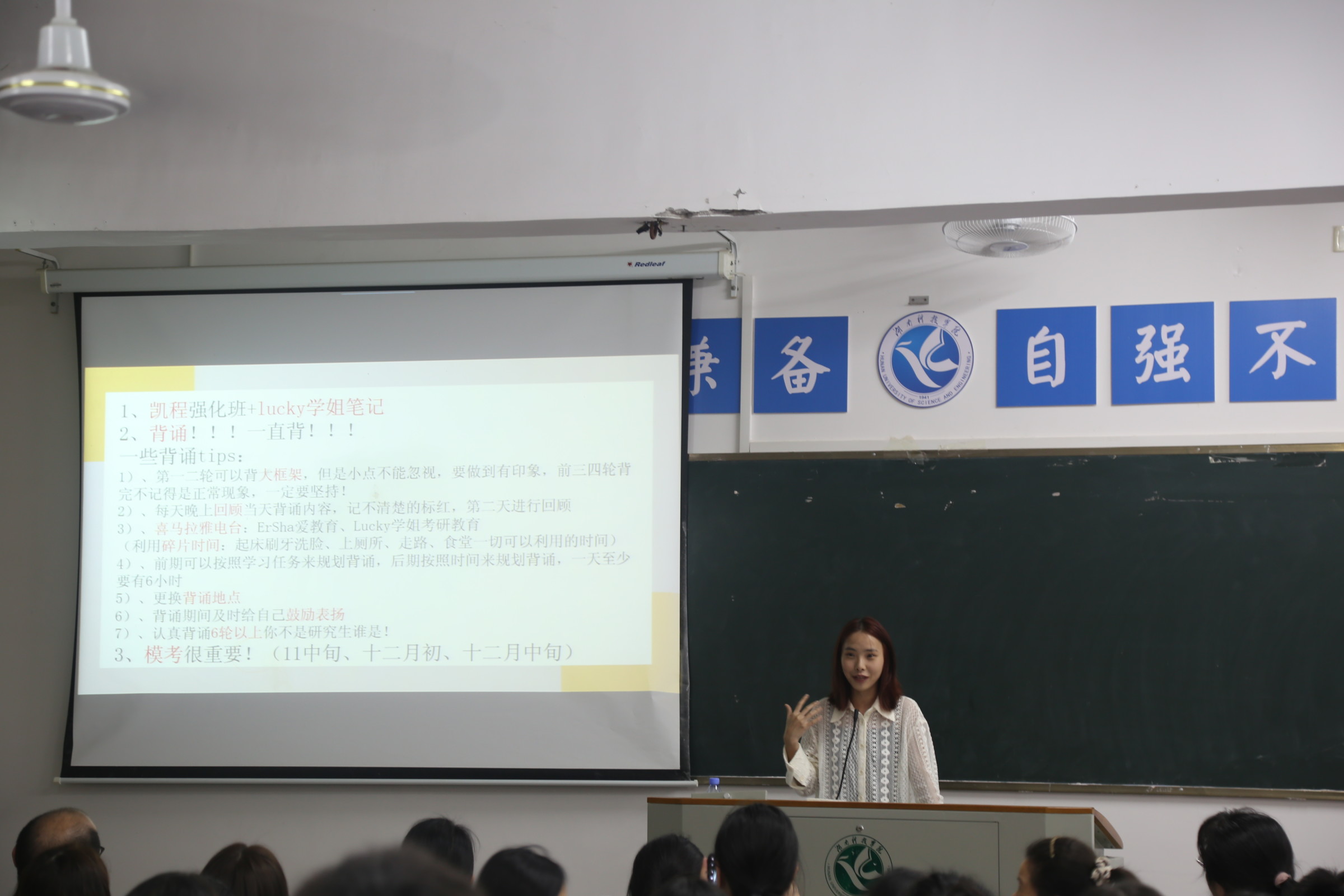 本网讯(通讯员田晓润杜俊杰)5月9日晚,理学院举行考研经验交流会,该院院长唐耀平,党总支书记唐卫华,部分教师代表,学院200名学生参会。