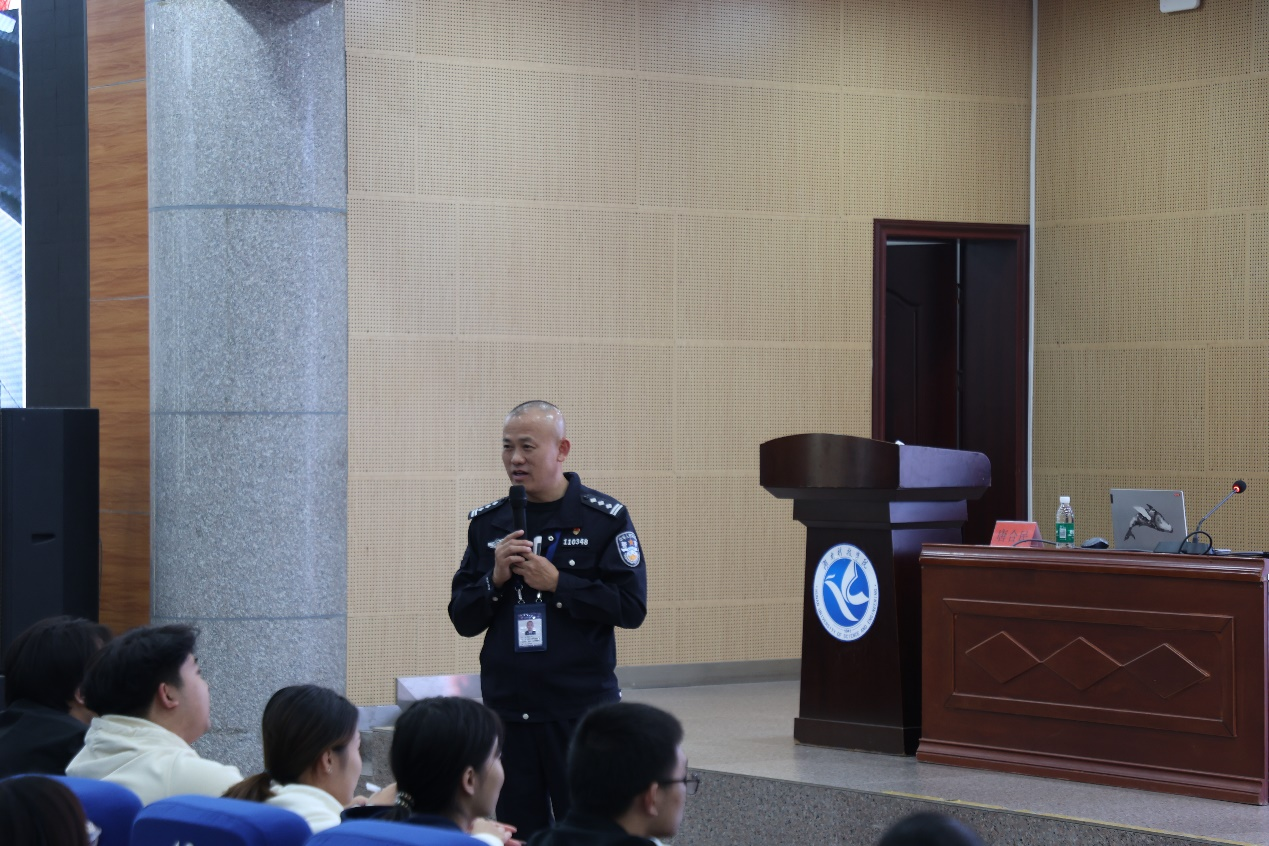 为提升我校学生交通安全意识,普及交通安全常识,2023年10月26日晚,九游在线交通安全专题报告会在潇湘大讲堂正式举行。本次会议,我校邀请零陵区交警大队队长唐合民为大家开展讲座,学生工作部副部长胡敏辉主持报告会,参加人员为我校主要学生干部。