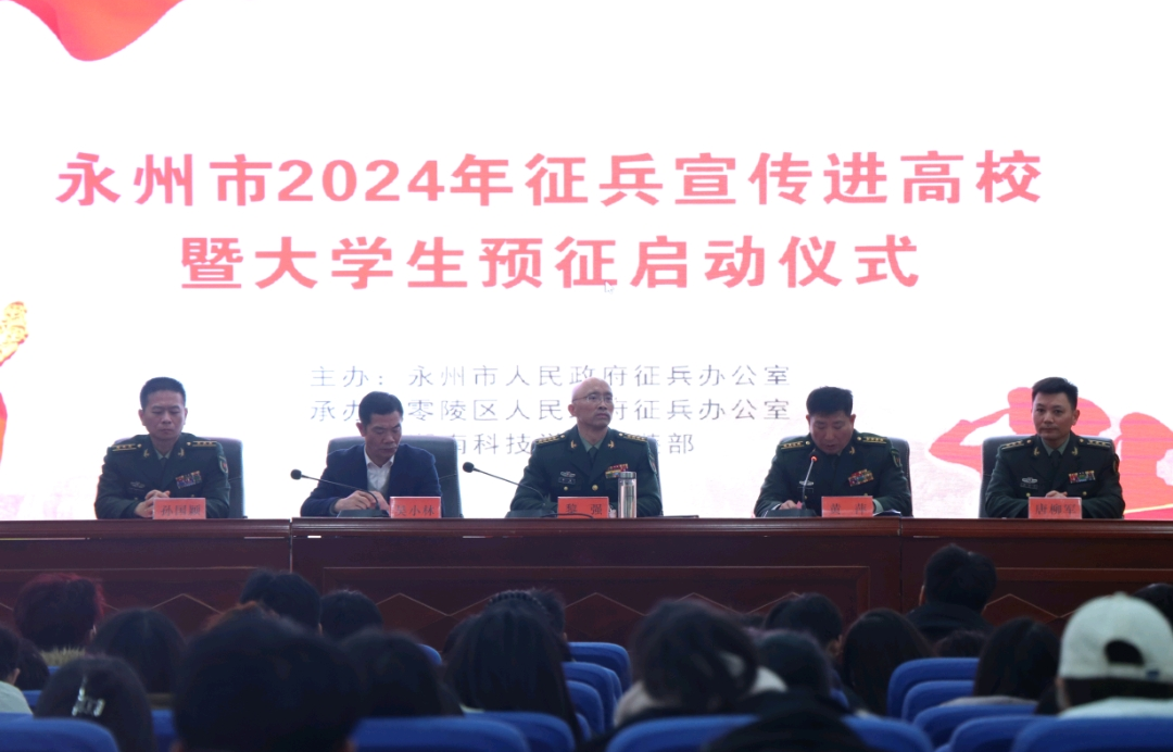 本网讯(学工部)12月28日,永州市2024年征兵宣传进高校暨大学生预征启动仪式在我校举行。永州军分区司令员黎强出席并讲话,永州市委常委、军分区政委张嘉庆出席,永州军分区副司令员黄萍主持仪式,九游在线党委委员、副校长吴小林,永州军分区动员处处长唐柳军,零陵区人武部政委孙国颖出席活动。