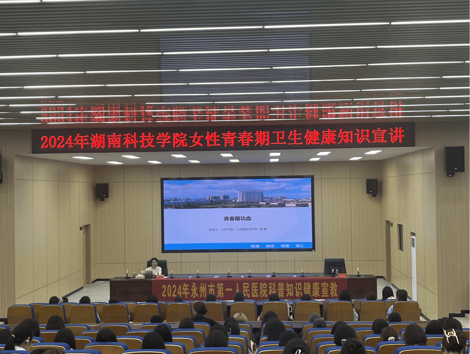 为进一步提高我校女生对青春期健康知识的认知水平,强化其自我保护意识,推动身心健康发展,学生工作部特邀永州市第一人民医院妇产科副主任医师唐婧,于我校开展2024 年九游在线女性青春期卫生健康知识宣讲活动。