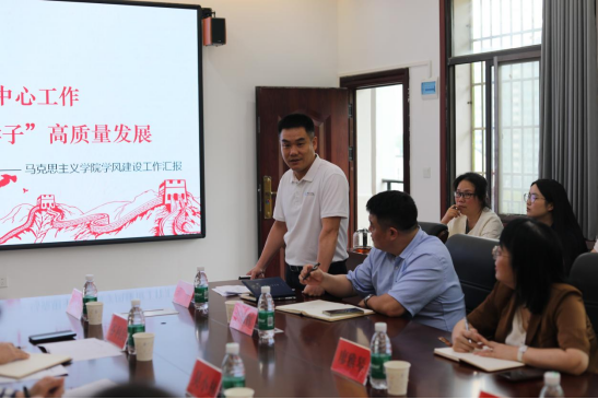会上,马克思主义学院党总支副书记高丹以《抓牢“学风建设”中心工作,促进“思政学子”高质量发展》为题作学风建设专题汇报,主要围绕“开展红色实践,以学生创新力提升促学风;加强技能训练,以复合型人才培养促学风;服务学生考研,以学生高质量发展促学风”汇报了马克思主义学院学风建设的特色举措。美术与艺术设计学院辅导员李国碧作为辅导员代表在会上作题为《丹青艺绘强学风,美育匠心筑成长》的发言,她从思想启学、管理严学、活动促学、榜样领学、育人典型要案例五方面介绍了她所带年级学风建设的经验。