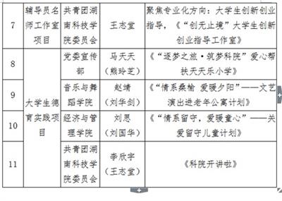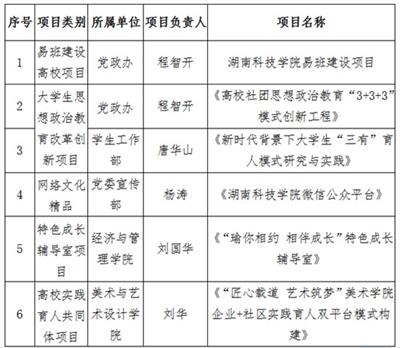 九游在线2018年大学生思想道德素质提升工程建设项目,经我校组织专家严格评审,将推荐以下11个项目参评湖南省2018年大学生思想道德素质提升工程建设项目的评审。