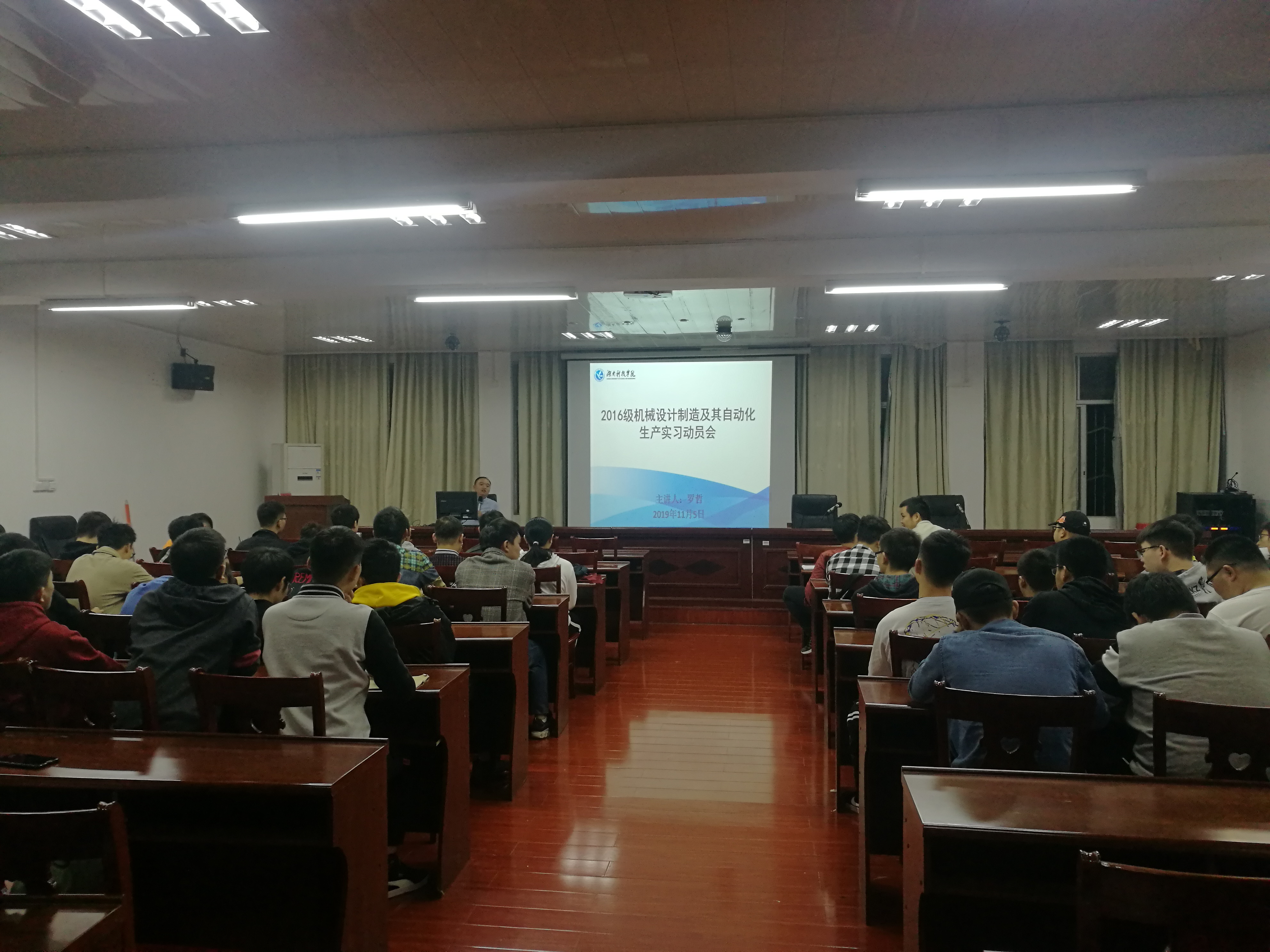 我院于11月5日在知行楼107举行了2016级机械设计制造及自动化专业生产实习动员大会,就实习目的、实习安排、实习内容、基本要求、实习任务、实习考核以及实习纪律向同学们做了详细介绍。本次生产实习为我校机械专业增招以来首次开展,校、院各级领导均对本次实习表示强烈关心与支持。本次生产实习为期两周,即2019年11月11日至2019年11月22日,实习地点为湖北省十堰市东风集团,实习期间安排了两位带队教师负责管理学生的日常以及安全工作。