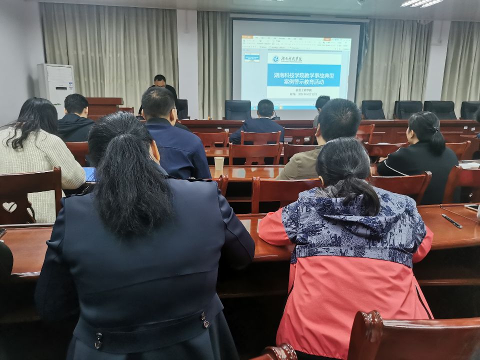 本网讯(通讯员 颜叶娟 )为进一步规范教学管理,学院组织开展教学事故警示教育专项活动,充分利用身边人身边事,及时对教职员工进行警示教育活动,院领导尹向东、谢一民、罗恩韬、张彬、夏汉伟及全体教职工参加。