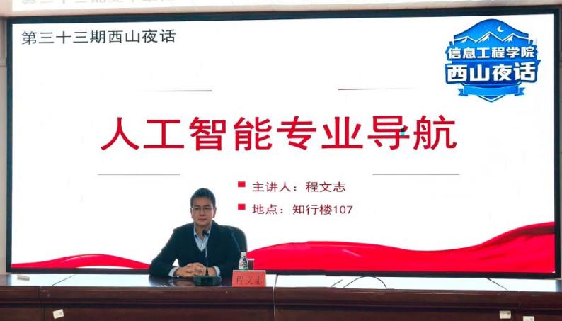 本网讯(通讯员 王紫晶 欧文富)10月22日,学院第三十三期“西山夜话”恳谈会如期举行。人工智能系主任程文志应邀作为主讲嘉宾,以“人工智能前沿发展与个人成长路径”为主题,与现场120余名人工智能专业学生展开深入交流。