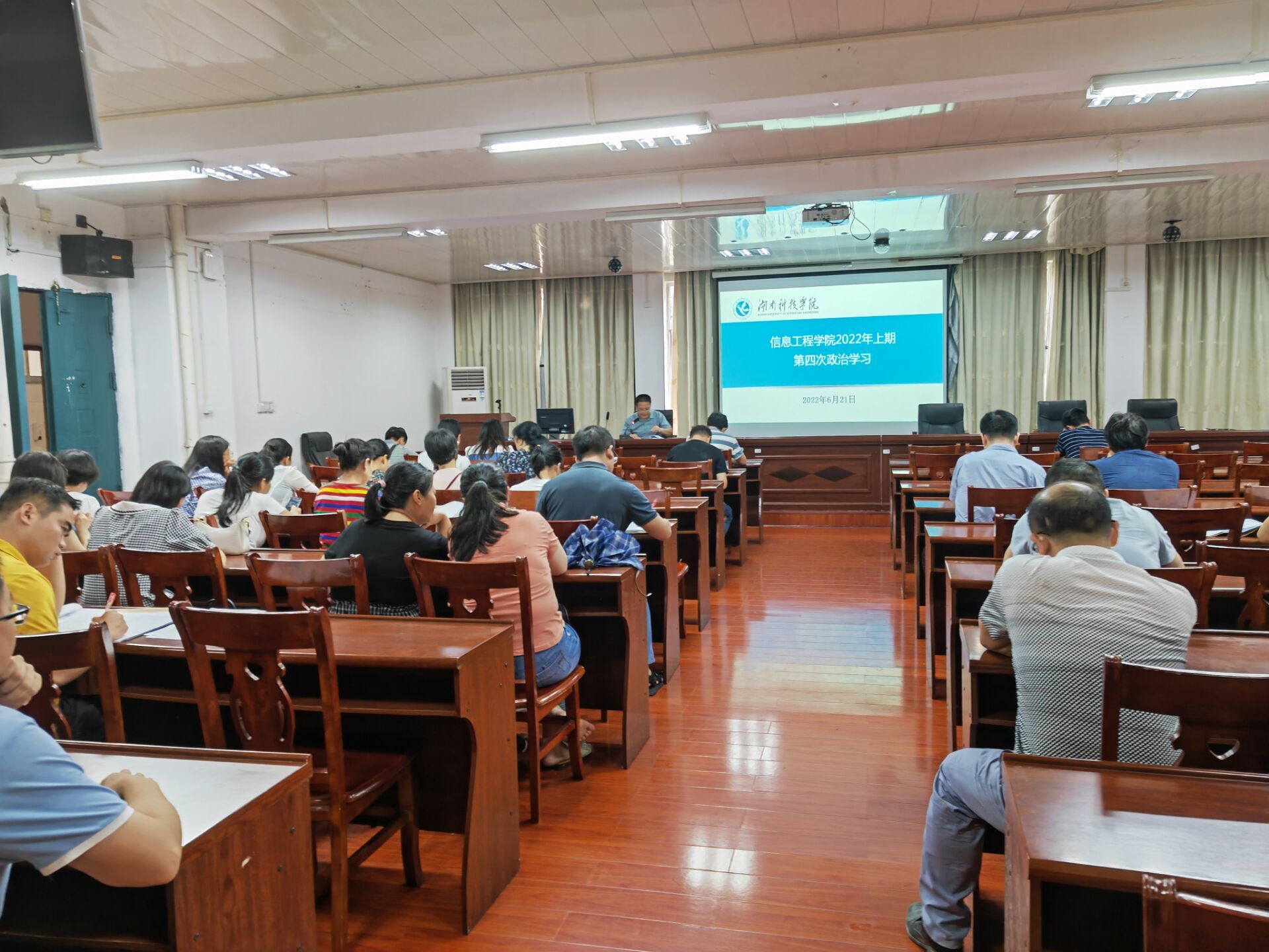 本网讯(通讯员 李娅菲)6月21日,我院开展2022年上学期第四次政治理论学习,全院教职工参加,会议由院党总支副书记夏汉伟主持。